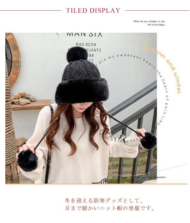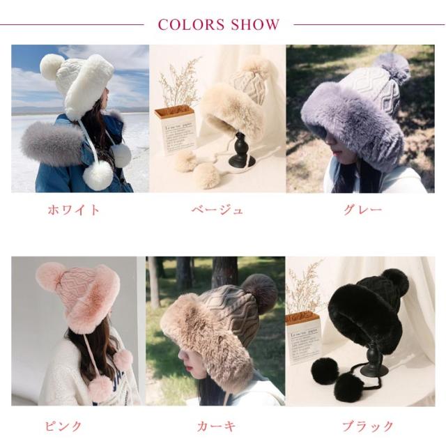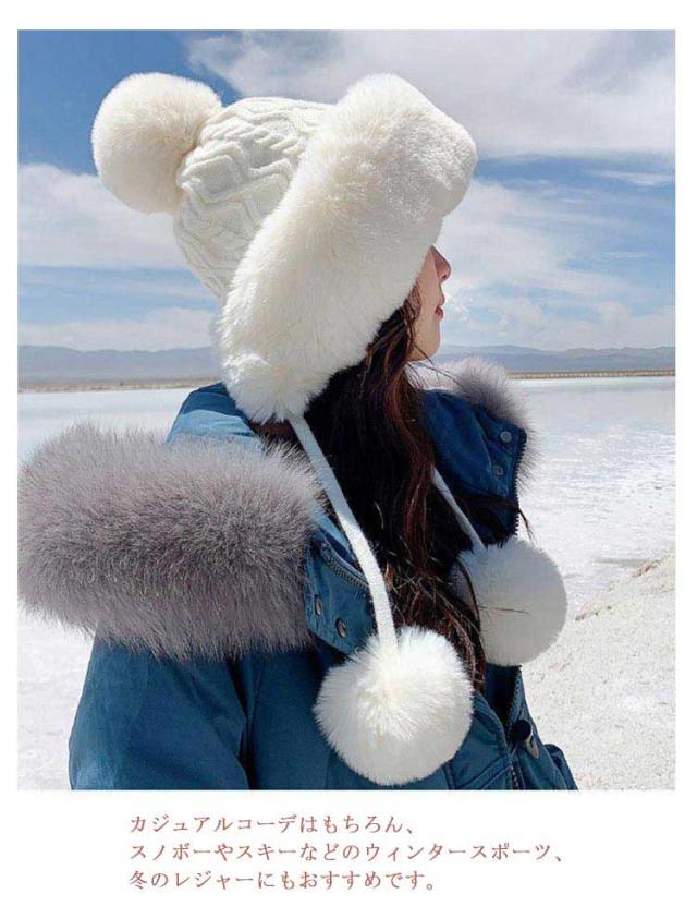 ニット帽 小顔効果 ボンボン 帽子 レディース スキー ワッチキャップ ニットキャップ 耳あて付き ビーニー 暖かい スノボ エコファー 防寒 大人 おしゃれ ニット帽 秋