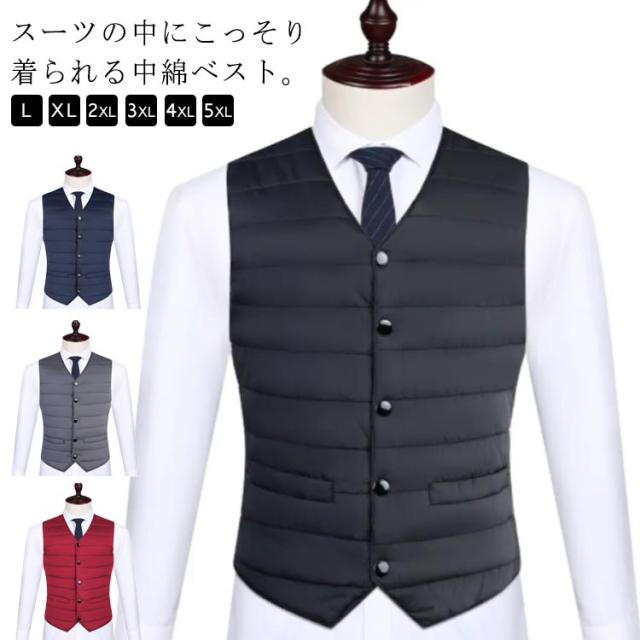 中綿ジレ あったか スーツベスト メンズ ビジネス インナーベスト 暖かい ノーカラー 防寒 秋冬用 ダウンベスト フォーマル ジレ Vネック スリム インナーダウン 前開き インナーダウン 無地 ゴルフ ジレ ベスト カジュアル かっこいい おしゃれ