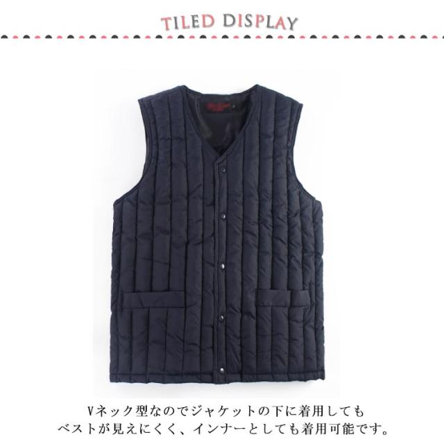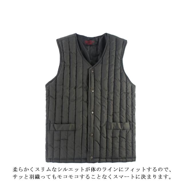 | 中綿入りで軽くて暖かく、防寒防風機能も備えたインナーベスト。 Vネック型なのでジャケットの下に着用してもベストが見えにくく、インナーとしても着用可能です。 柔らかくスリムなシルエットが体のラインにフィットするので、サッと羽織ってもモコモコすることなくスマートに決まります。 | |