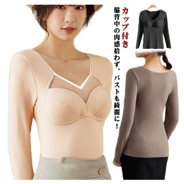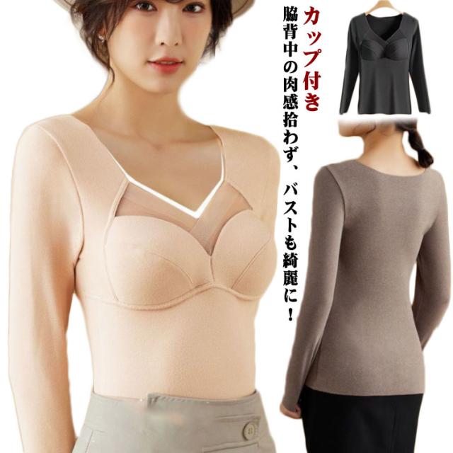 脇肉 ブラトップ ノンワイヤー 長袖 垂れ胸 カップ付き 脇高 カップ付きブラトップ 脇肉 オールインワンブラトップ 育乳ブラ 補正 補正 背肉 ブラジャー 補正下着 垂れ 全4色 大きいサイズ シンプル インナー 暖かい 軽量