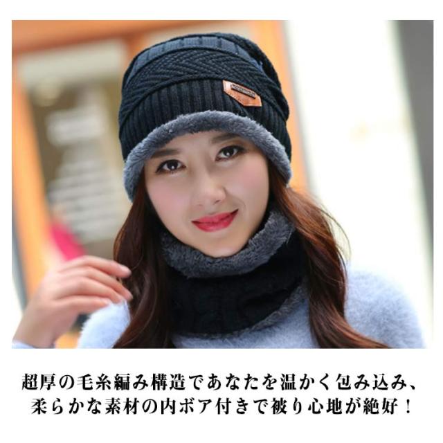 | 熱をキープするデザインのニット帽とネックウォーマーのセット。 超厚の毛糸編み構造であなたを温かく包み込み、柔らかな素材の内ボア付きで被り心地が絶好! 寒い季節にぴったりなので、スキー、スノボなど、冬のアウトドアスポーツにも大活躍です。 頭、耳、首元を冷たい風から守ります。 熱を逃さず、あったかくてぽかぽかです。 厚すぎず、程よいボリューム感で肌触りも良いので、 チクチク感が苦手な方に重宝されます! 男女兼用で被れるデザインで友達やカップルでペアルックやお揃いもおすすめ! 防寒に優れるロングタイプなので、深く被ることで耳まで当てます! | |