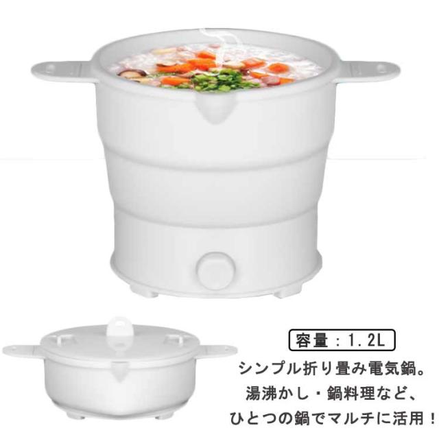 シリコン鍋 折りたたみ 大容量 電気鍋 電気調理ケトル やわらか鍋 折りたたみケトル 折りたたみ鍋 折りたたみ 1.2L 蒸し 多機能グリル鍋 煮る 電気なべ 炊く 炊飯 炒める 一人鍋 電気ラーメン鍋 野菜鍋 折り畳み電気鍋