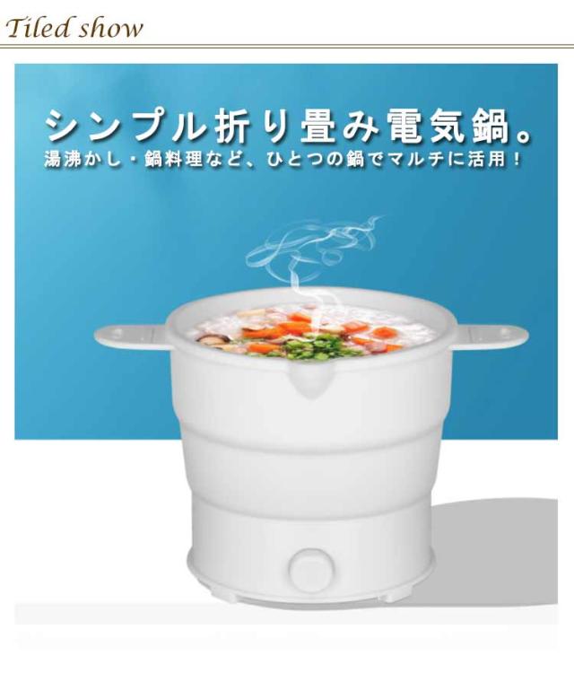 | シンプル折り畳み電気鍋。湯沸かし・鍋料理など、ひとつの鍋でマルチに活用! コンパクト!収納場所に困りません。カバンに入れて旅行にも持ち運びできます。 様々なシーンで活躍する!旅行・出張のためだけじゃなくで、朝一番の白湯を沸かしたり、夕食にプラスする即席味噌汁を作ったりと、狭いキッチンでも簡単に収納出来ます日常生活で予想以上に普段使いに活躍中です。 | |