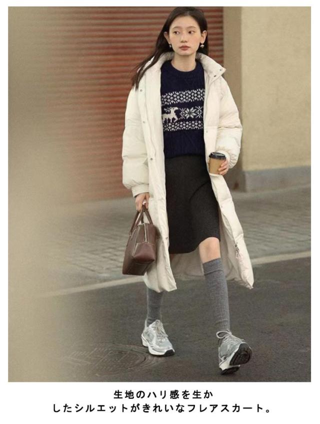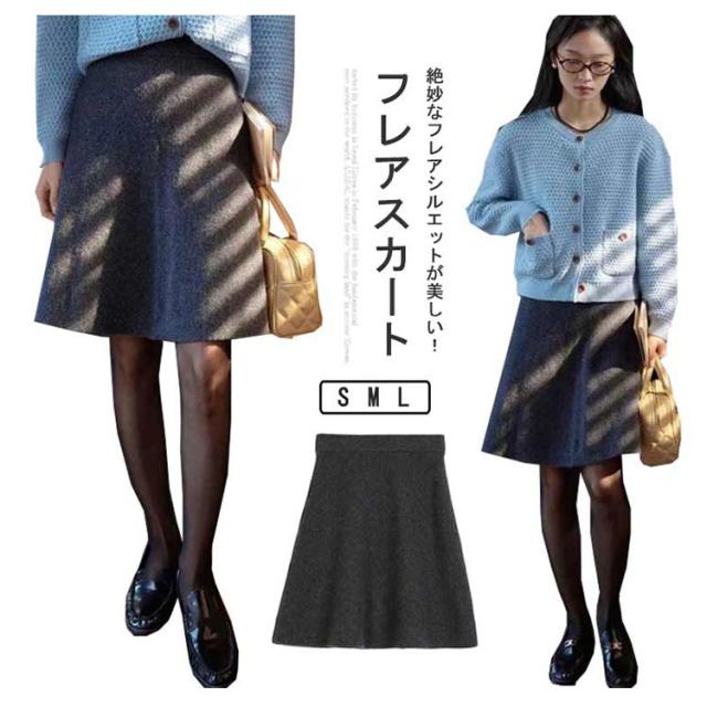 ニットスカート ボトムス Aライン 秋冬 フレアスカート ミディ丈 ミドル丈 フレアスカート スカート ウエストゴム 膝丈 ショート丈 ミモレ レディース フォーマル フェミニン ひざ丈スカート 秋 冬 着やせ シンプル カジュアル 大人 ダークグレー