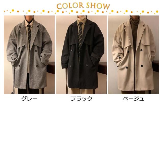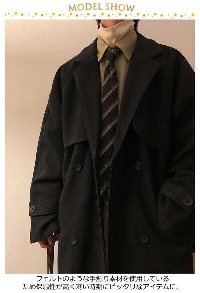 トレンチコート 冬 オーバーサイズ カジュアル トレンチコート コート アウター ロング 暖かい ウール混 チェスターコート ロングコート ビジネス コート ジャケット 秋 無地 ゆったり 厚手 ドロップドショルダー メンズ 春 防寒 大きいサイズ 通勤 通学 秋冬 オシャレ