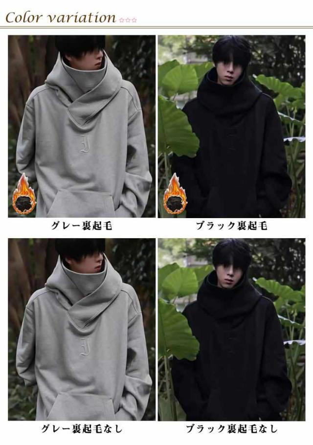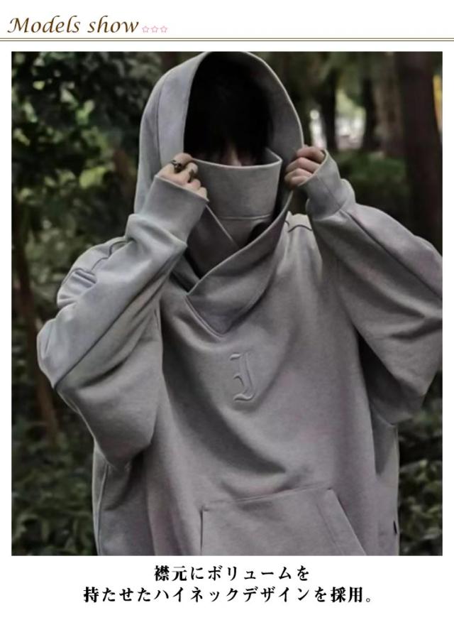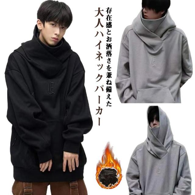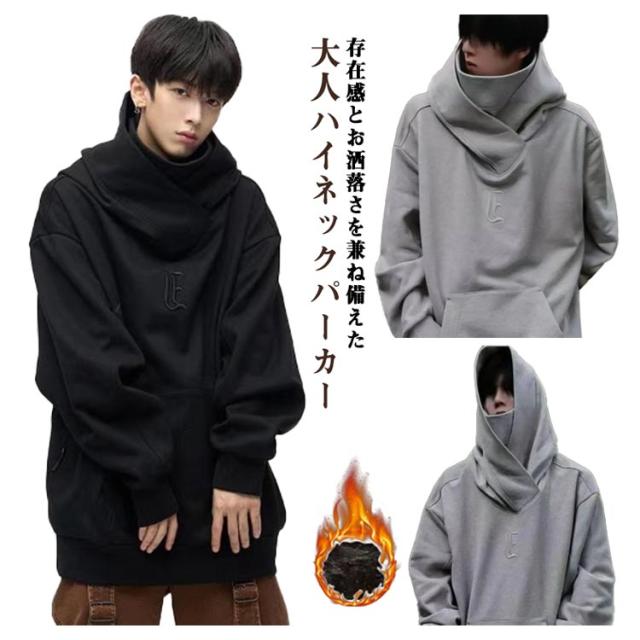 フード付きパーカー トップス ビッグパーカー ボリュームカラーパーカー フード付きパーカー メンズパーカー パーカー オーバーサイズ ハイネック 裏起毛 男性 ストリート系 春 秋
