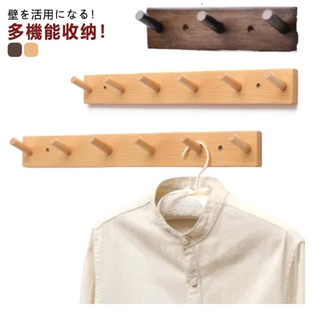 賃貸 フックハンガー 4連 5連 3連 目立たない 収納 幅55cm ウォールフック ウォールハンガー 木製 壁掛け オシャレ 6連 壁掛け ハンガーラック スリム 省スペース 子供 玄関 リビング おしゃれ フック付き