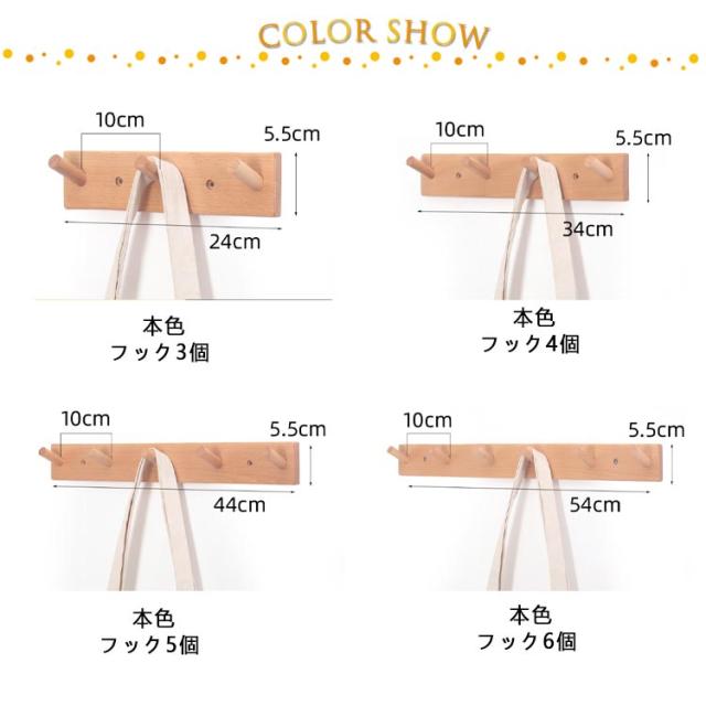 | サイズについての説明 | フック3個:24*5.5cm フック4個:34*5.5cm フック5個:44*5.5cm フック6個:54*5.5cm |
