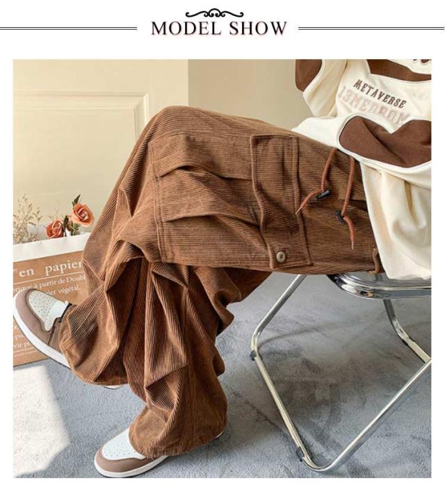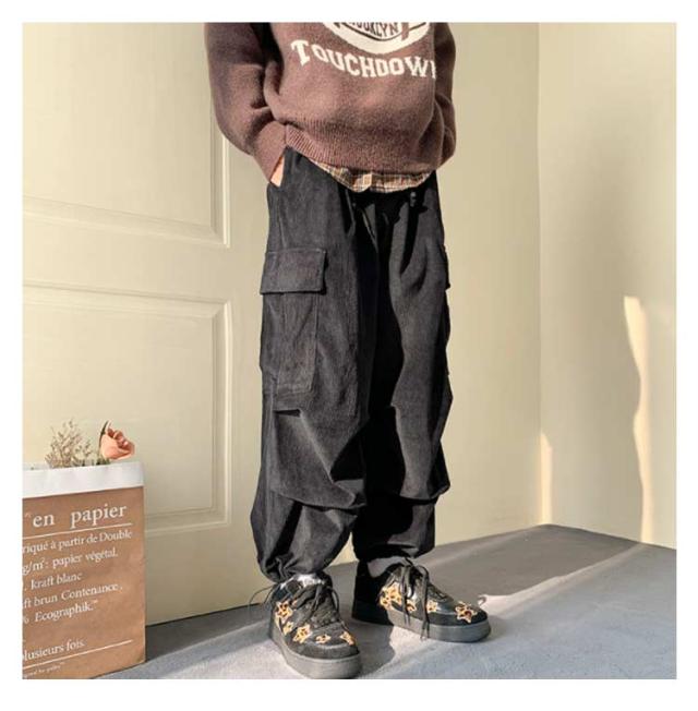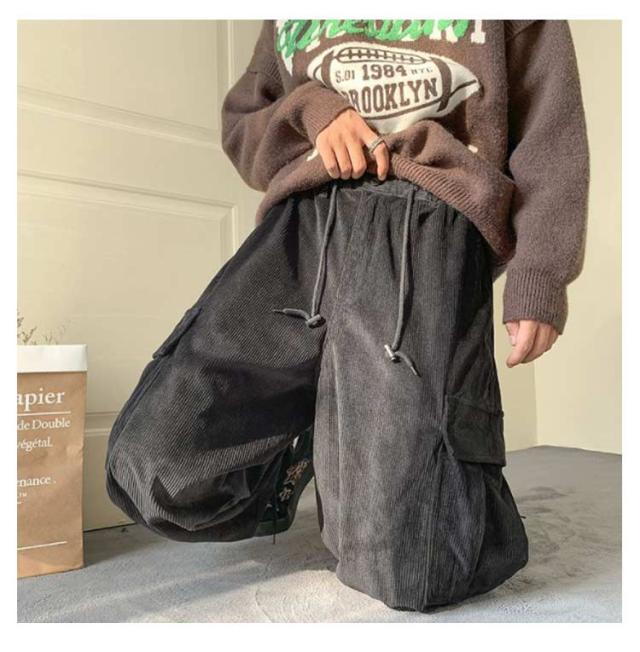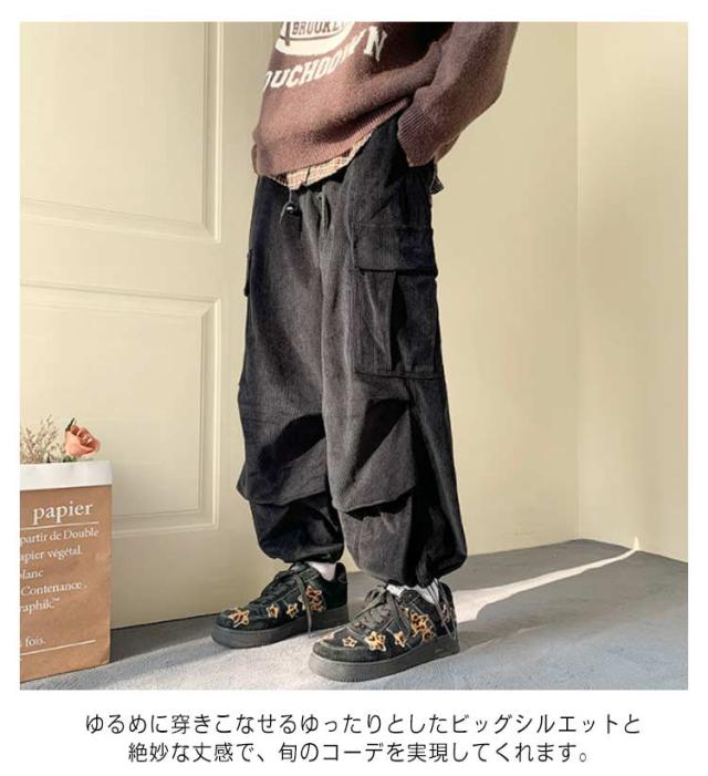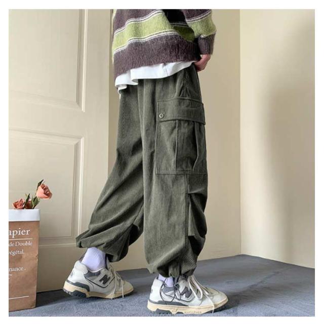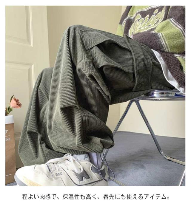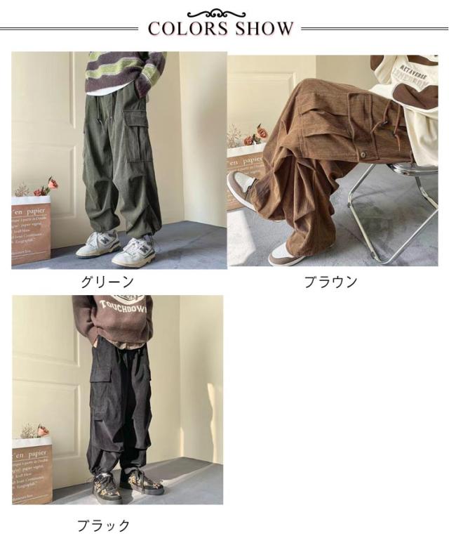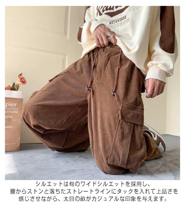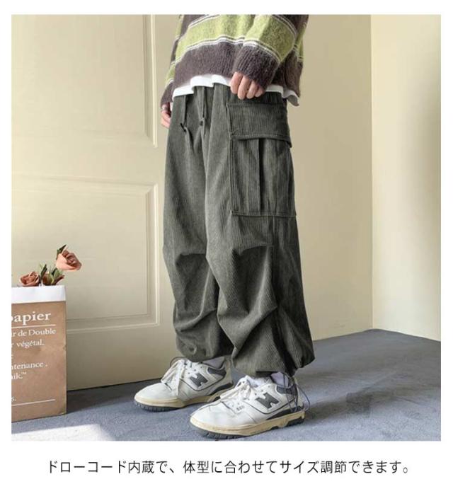 メンズ コーデュロイパンツ カーゴパンツ 作業着 ズボン ポケット付き カジュアルパンツ ワイドパンツ コーデュロイパンツ 暖かい ワークパンツ ミリタリーパンツ ロングパンツ ウエストゴム 体型カバー アウトドア 韓国