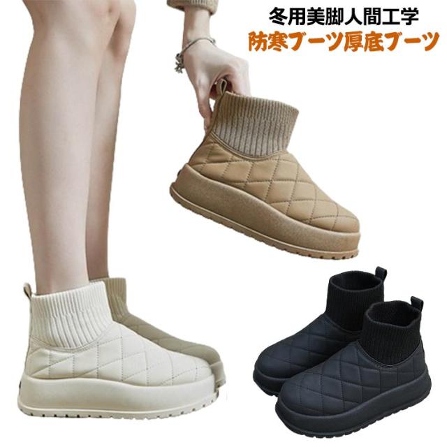 歩きやすい ショートブーツ 厚底スノーブーツ 厚底 歩きやすい ショートブーツレディース スノーシューズ 4CM レディース 黒 白 ウィンターブーツ スノーシューズ レディース 厚底スノーブーツ レディース ショートブーツ 軽量 防滑 通気 保温 秋冬 暖かい