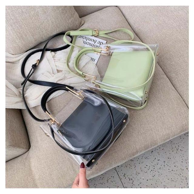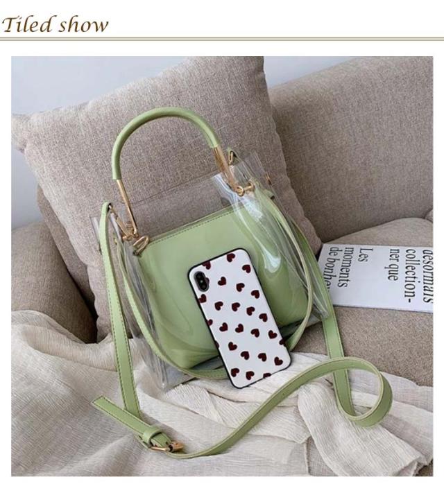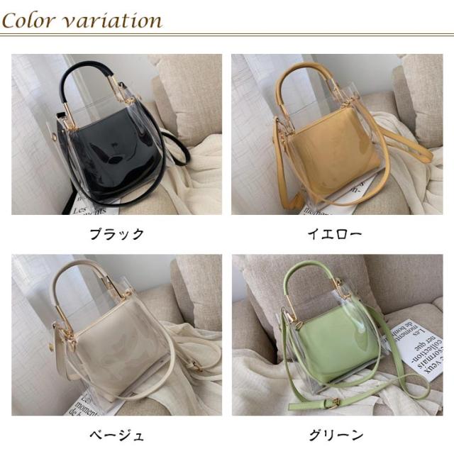 | ハンドバッグ、ショルダーバッグ 、トートバッグでお使い頂ける3wayクリアバッグです。大人の女性も使いやすい上品なデザインです。 インナーバッグ付き!ファスナーで開閉出来るインナーバッグが付属しています。インナーバッグ単体でショルダーバッグや、ポーチとしてもお使い頂けます。 ショルダーストラップの長さを調整出来ます。ご自身の体形、斜め掛け、肩掛け等その日の気分に合わせて変更できます。 バッグには約11cm程のマチを設定、ある程度厚みのある物を収納しても型崩れしにくくシルエット綺麗にお使いいただけます。 厳選した上質なPVC生地とPUレザーを採用しています。少しの水濡れ、汚れにも強く、絞ったタオル等で拭いてケア出来ます。 非常に軽量で肩への負担を軽減します。 | |