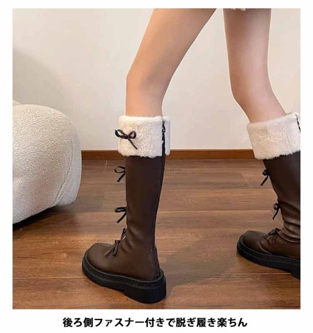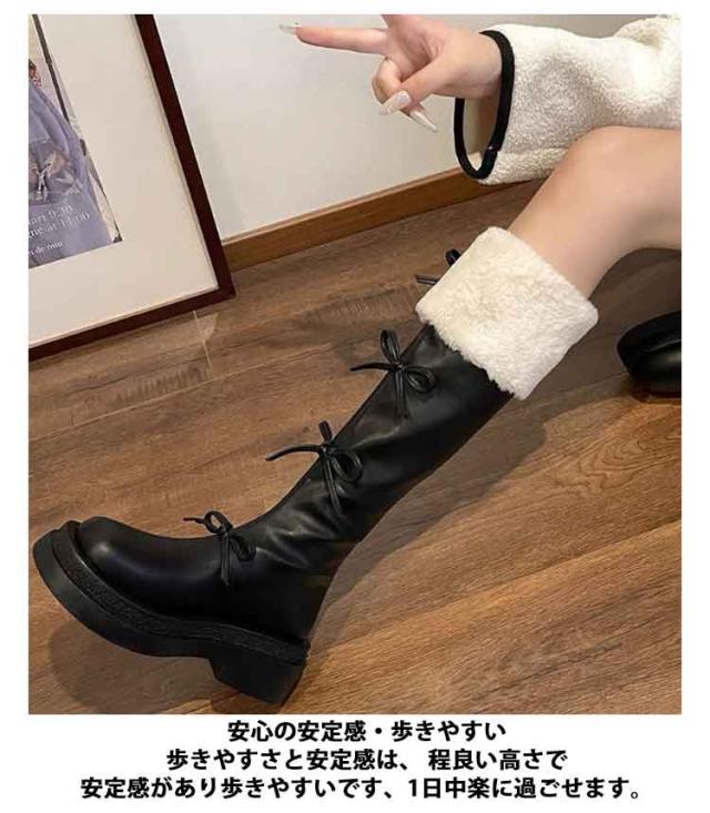 ふわふわ ジョッキーブーツ 厚底ブーツ ブーツ ロング丈 もこもこ ロングブーツ 太ヒール 厚底 ニーハイブーツ ローヒール 歩きやすい 美脚 レディース カジュアル シンプル ブーツ 痛くない ゆったり ブーツ 細見せ 秋冬 疲れにくい おでかけ