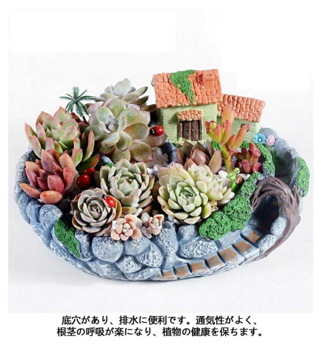 多肉植物 お城 寄せ植え 鉢 別荘 大サイズ ハウス 植木鉢 園芸用 底穴付き 室内 プランター 民家 多肉植物 観葉植物 鉢植え ガーデン DIY 可愛い エケベリア サボテン ハオルチア クラッスラ ハオルチア カランコエ フラワーポット 樹脂