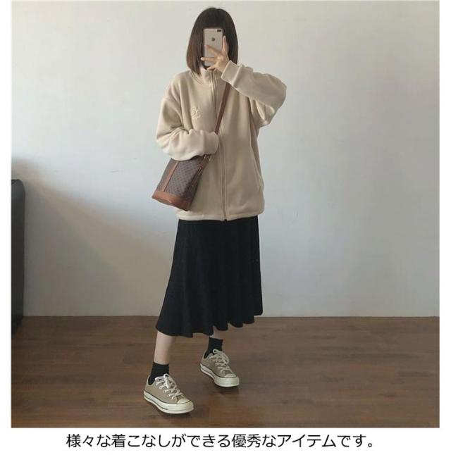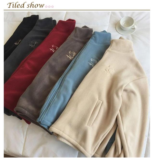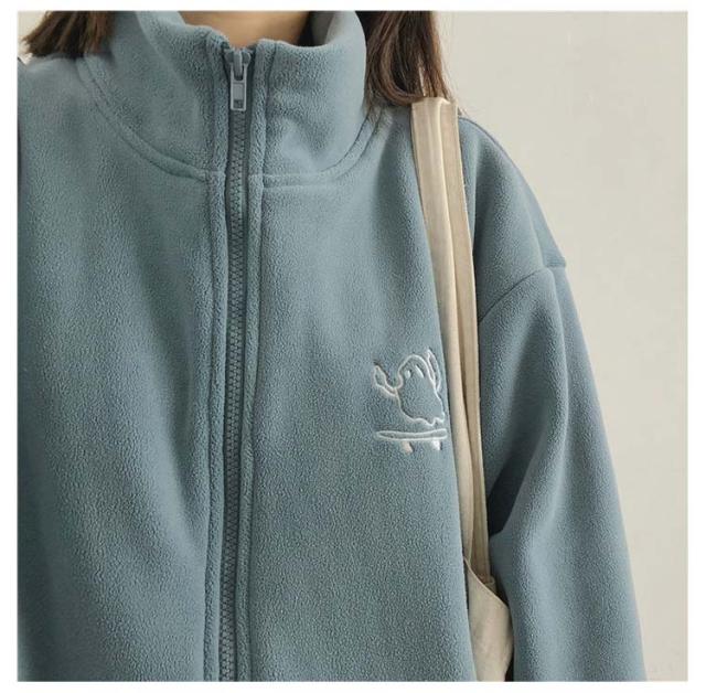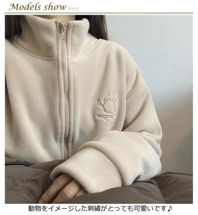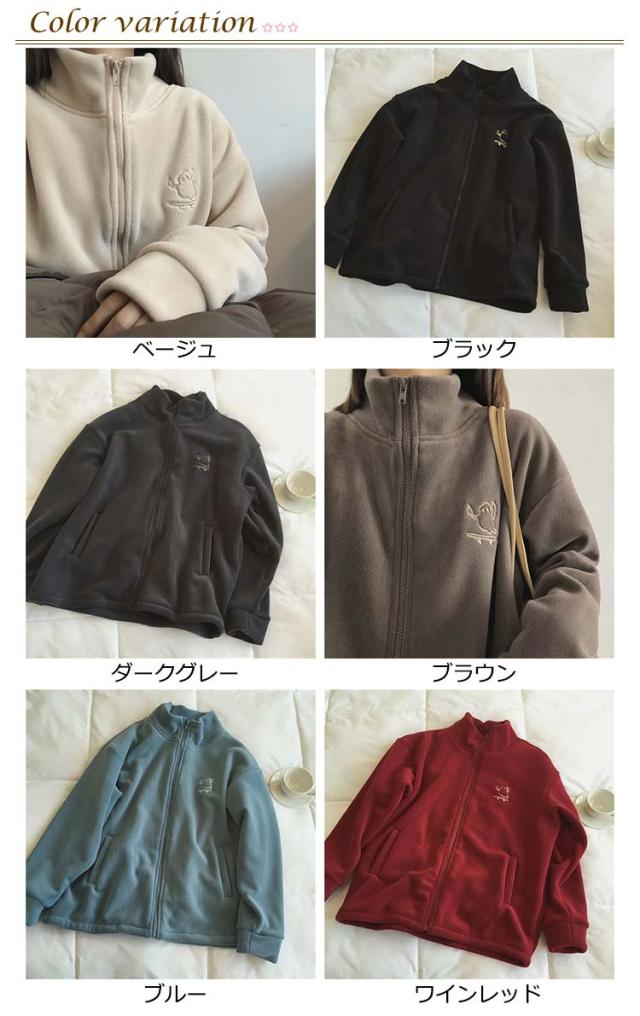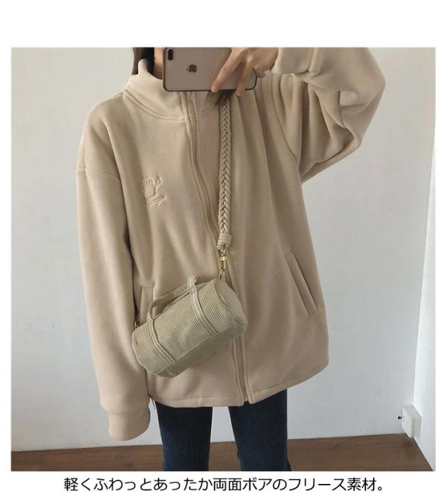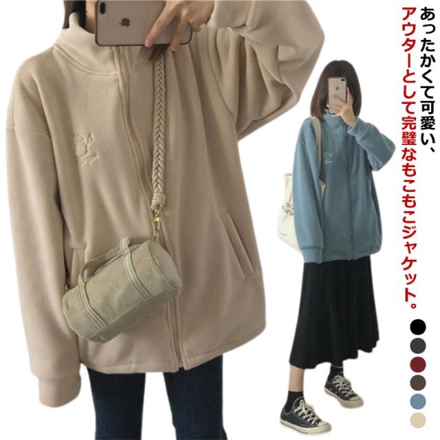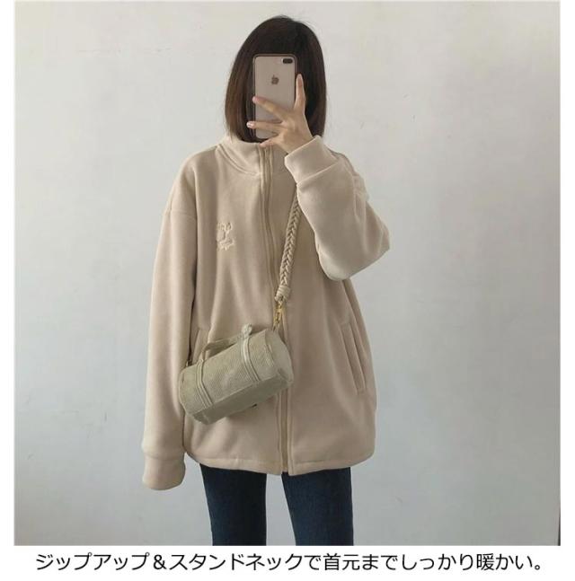 刺繍 パーカー 軽い ジャケット 両面ボア レディース フリース ジップジャケット 極暖 アウター コート ジャンパー ジッパー スウェット 秋冬 スタンドネック ブルゾン 長袖 ノーカラー あったか 極暖 コーラルフリース 無地