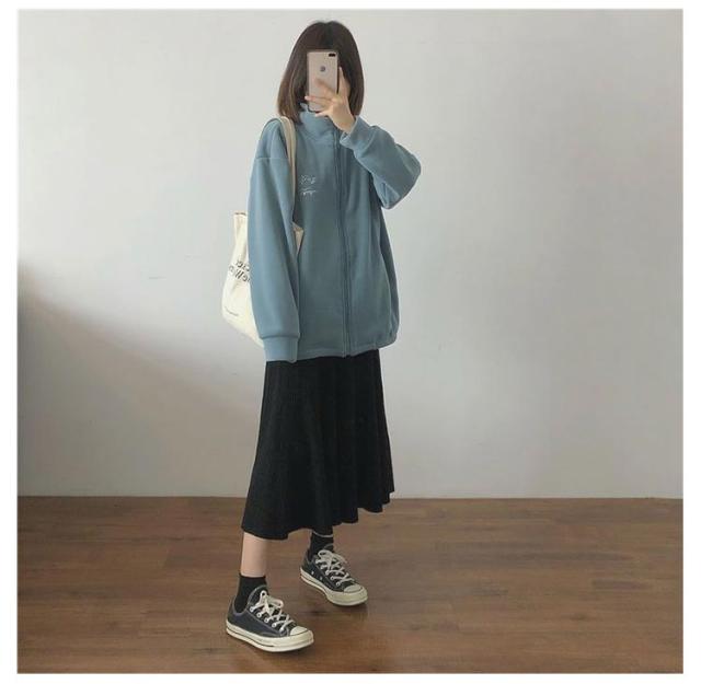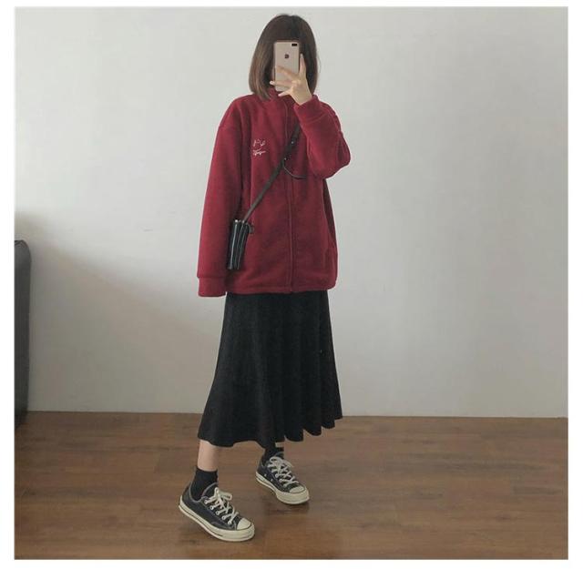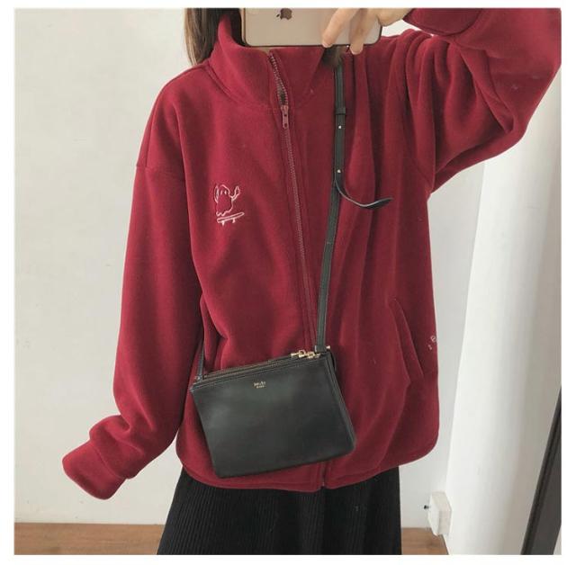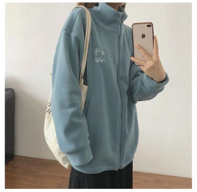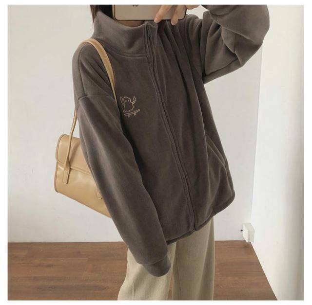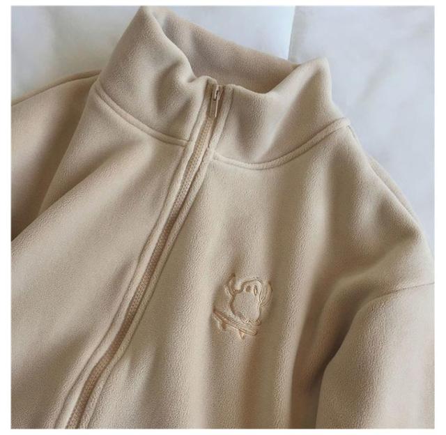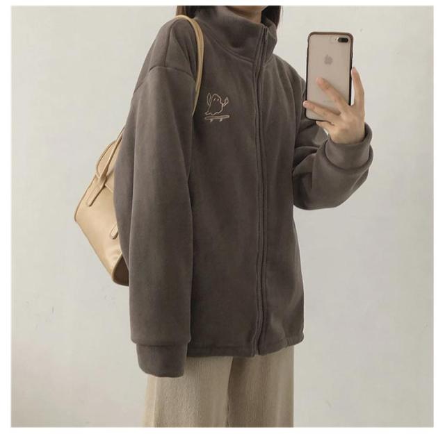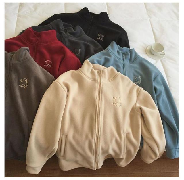刺繍 パーカー 軽い ジャケット 両面ボア レディース フリース ジップジャケット 極暖 アウター コート ジャンパー ジッパー スウェット 秋冬 スタンドネック ブルゾン 長袖 ノーカラー あったか 極暖 コーラルフリース 無地