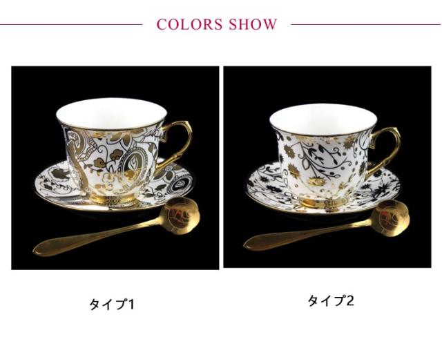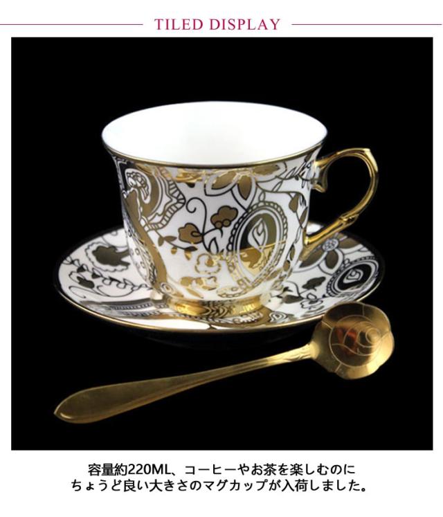ソーサー付き 陶器 コーヒーカップ ゴールド セット コーヒーカップ ティーカップ 220ml 2客 受け皿付き マグカップ 総柄 北欧 おしゃれ 珈琲カップ 花柄 ゴールドスプーン付き カフェ風 珈琲 紅茶 カップ 碗皿 食器 来客用 高級感 華奢