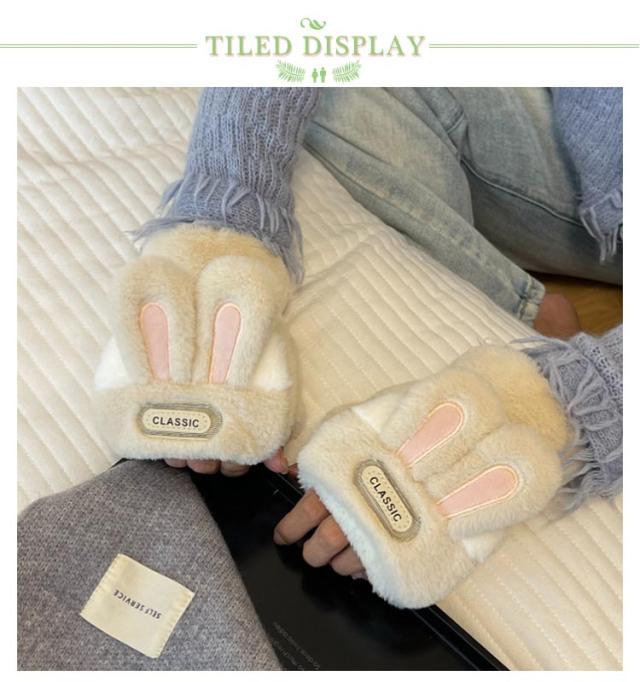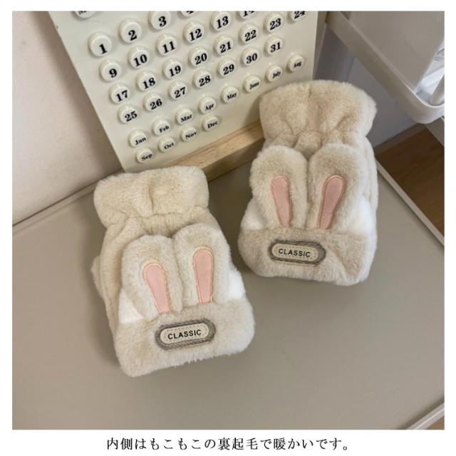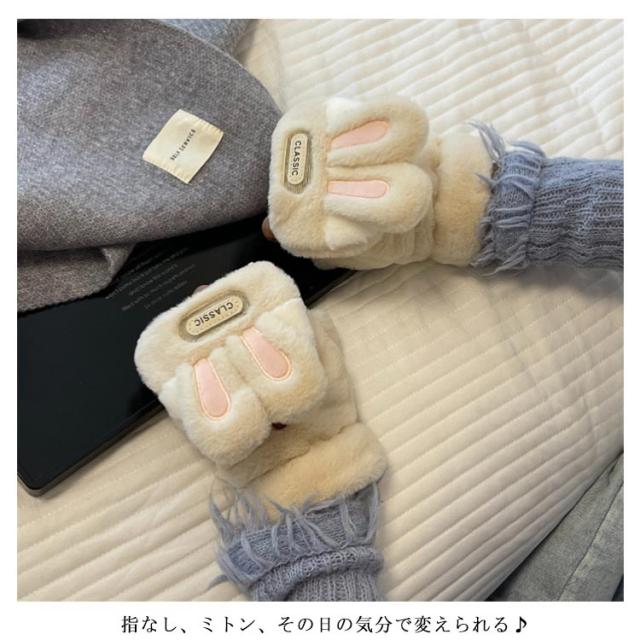手袋 ミトン手袋 ウサギ耳 レディース 通学 手袋 手袋 もこもこ 暖かい 防寒 指なし かわいい スマホ 通勤 学生 秋冬 自転車 グローブ 防風 アウトドア 手袋