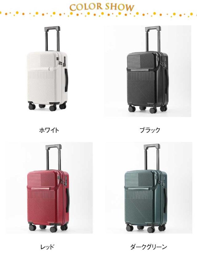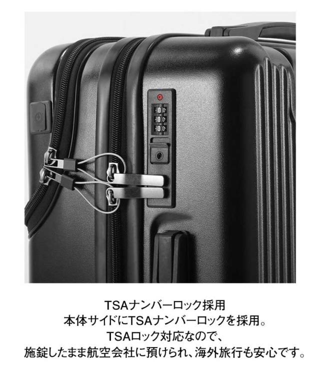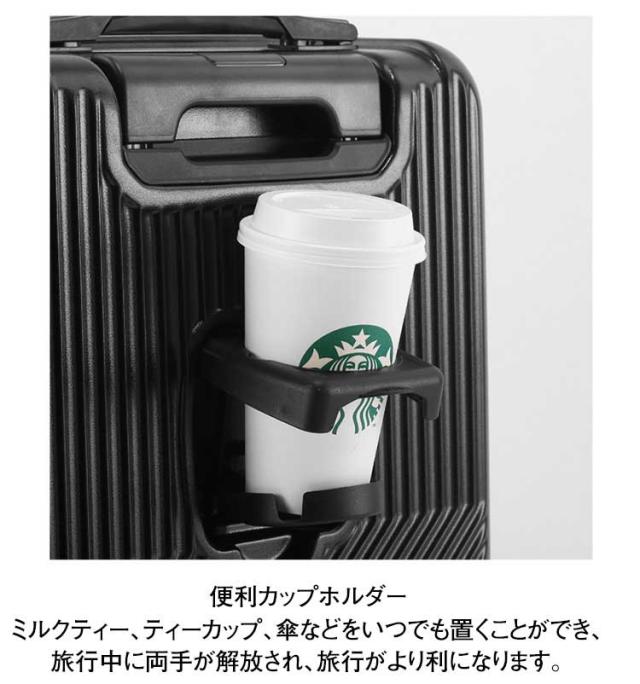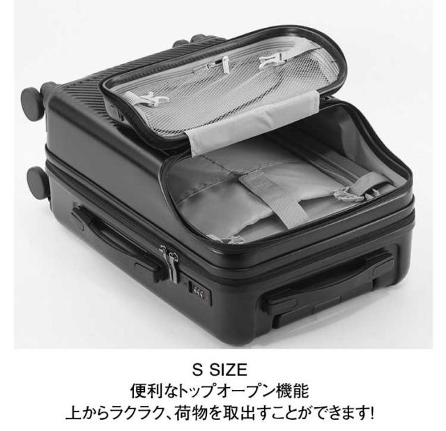 | S SIZE 便利なトップオープン機能 上からラクラク、荷物を取出すことができます! 整理しやすい内装 独立したトップオープンスペース。メイン収納にメッシュ仕切り、ファスナー仕切り、Xバンドを採用し荷崩れ防止に役立ちます。 TSAナンバーロック採用 本体サイドにTSAナンバーロックを採用。TSAロック対応なので、施錠したまま航空会社に預けられ、海外旅行も安心です。 360°静音キャスター搭載。 便利カップホルダー ミルクティー、ティーカップ、傘などをいつでも置くことができ、旅行中に両手が解放され、旅行がより利になります。 便利なUSBポート付き。 | |