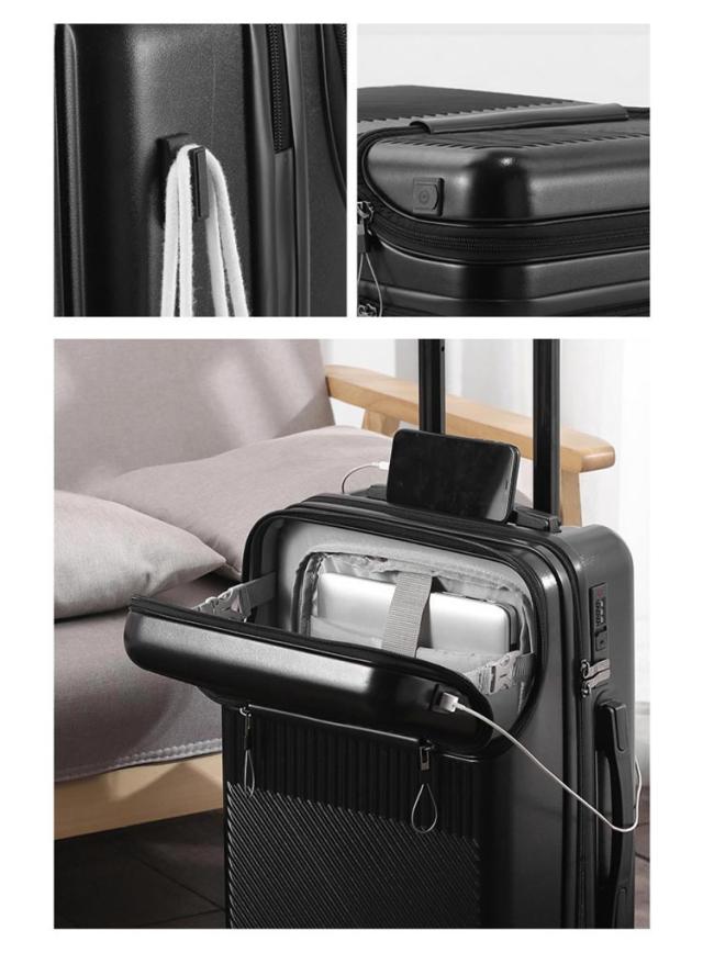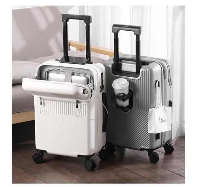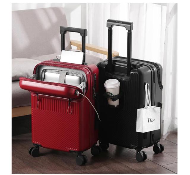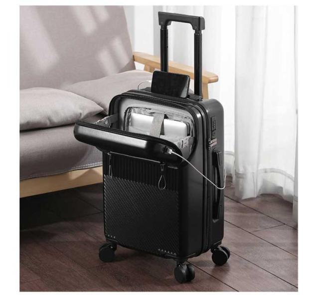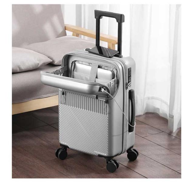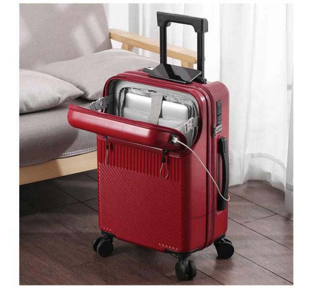 キャリーケース 機内持ち込み可能 USBポート付き スーツケース 前開き フロントオープン キャリーケース 上開き 3-5日用 泊まる 静音 TSAロック 回転 キャリーバッグ 大容量 多機能 多収納ポケット トランク 修学 海外