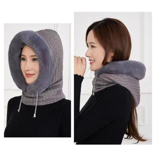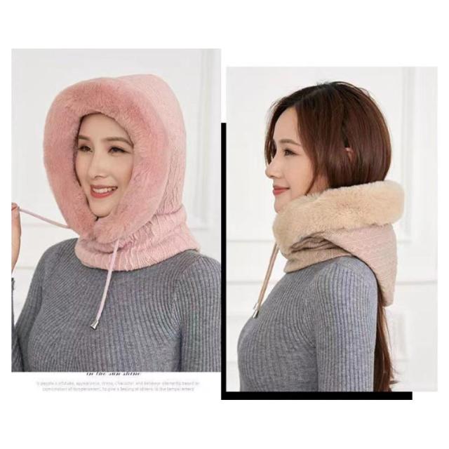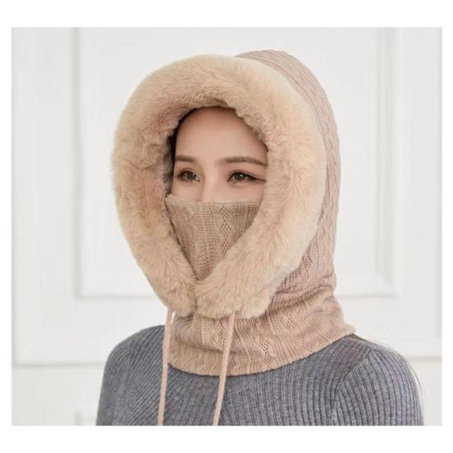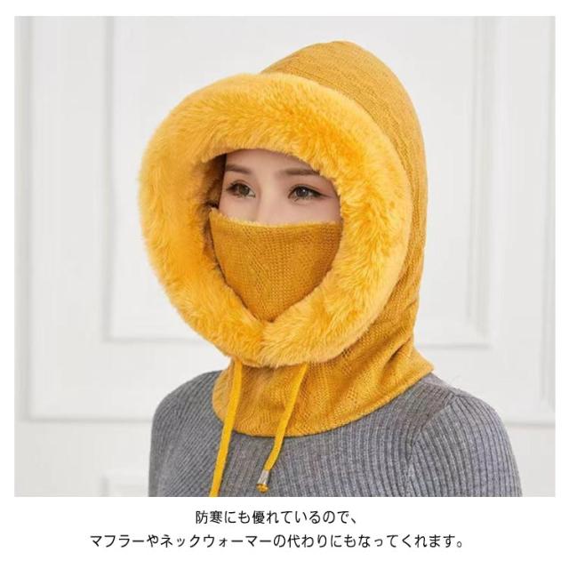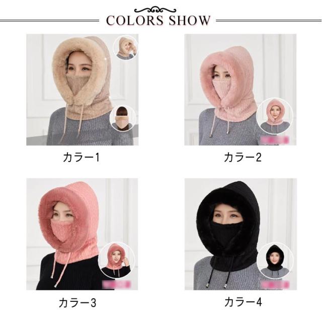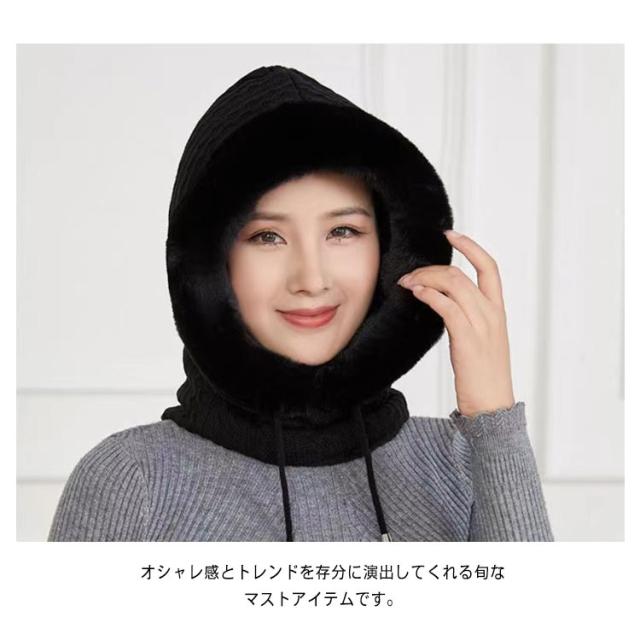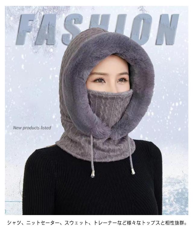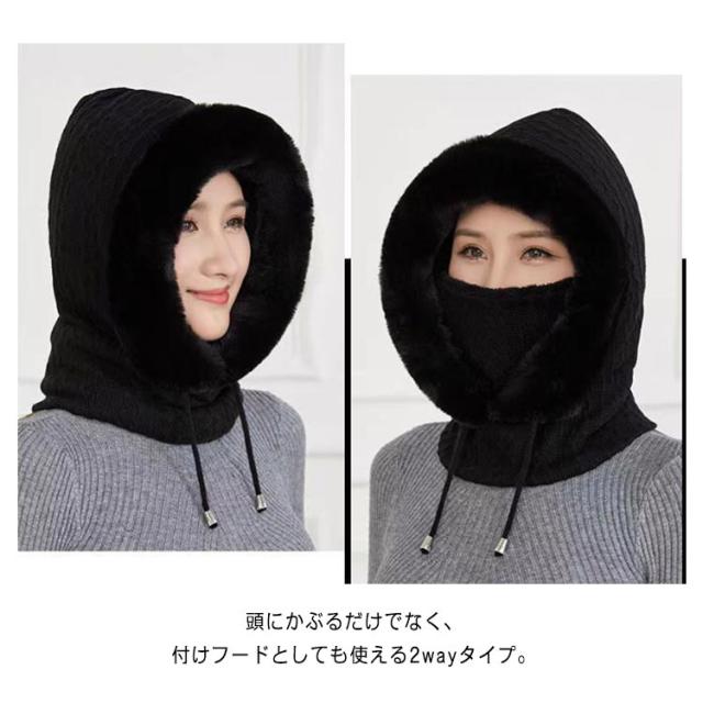 帽子 ニット ファーバラクラバ レディース ファーバラクラバ ぼうし マフラー ネックウォーマー ニット フード 帽子 一体型 ネックガード 小顔効果 ファー 防寒対策 暖かい あったか グッズ コーデ 柔らかい 厚手