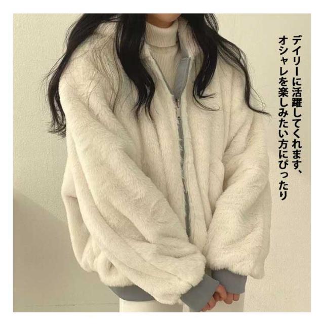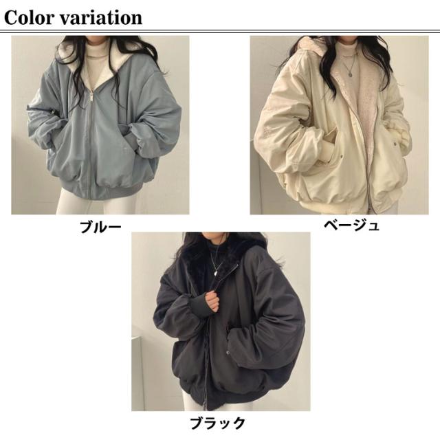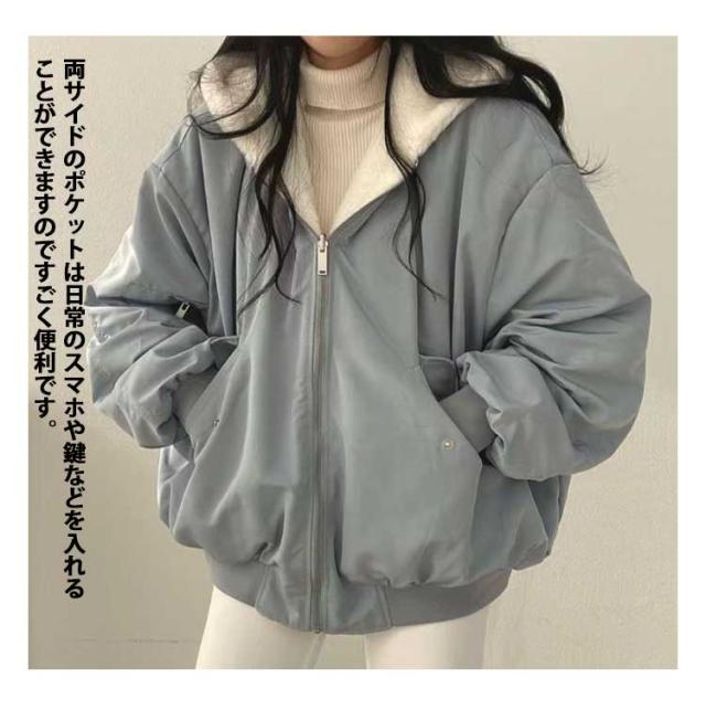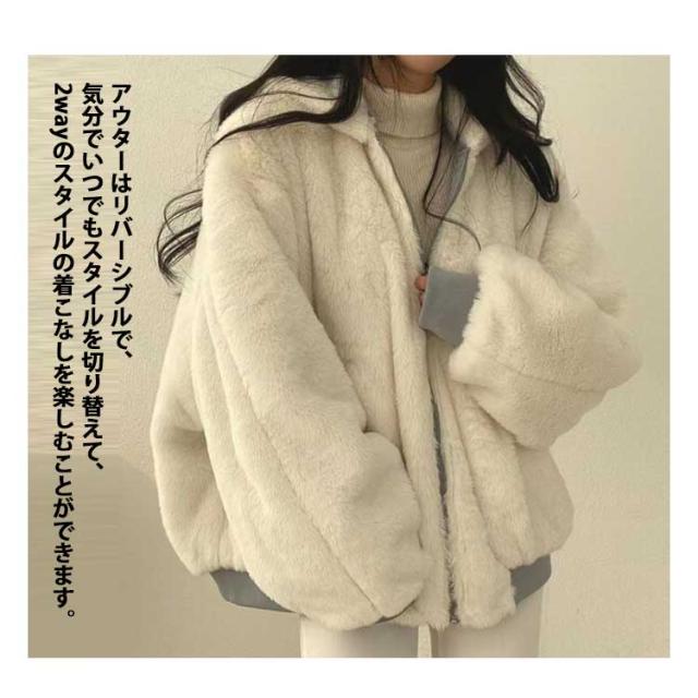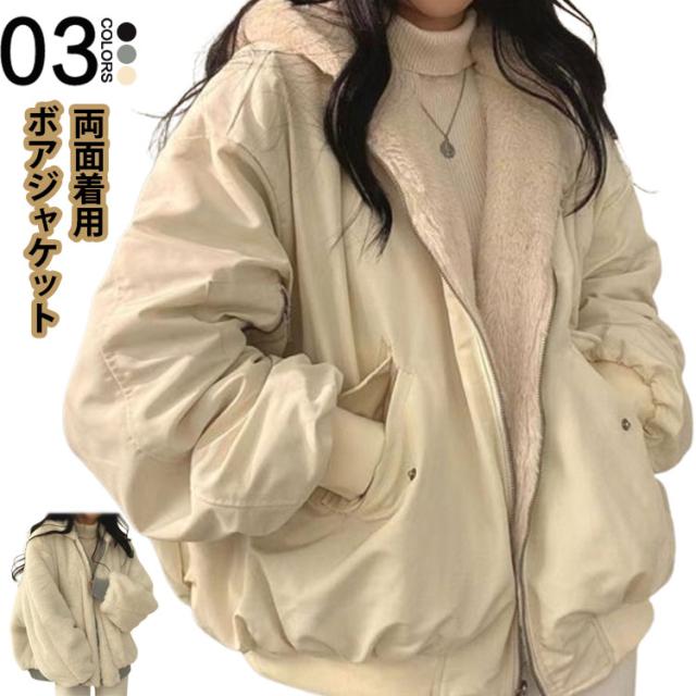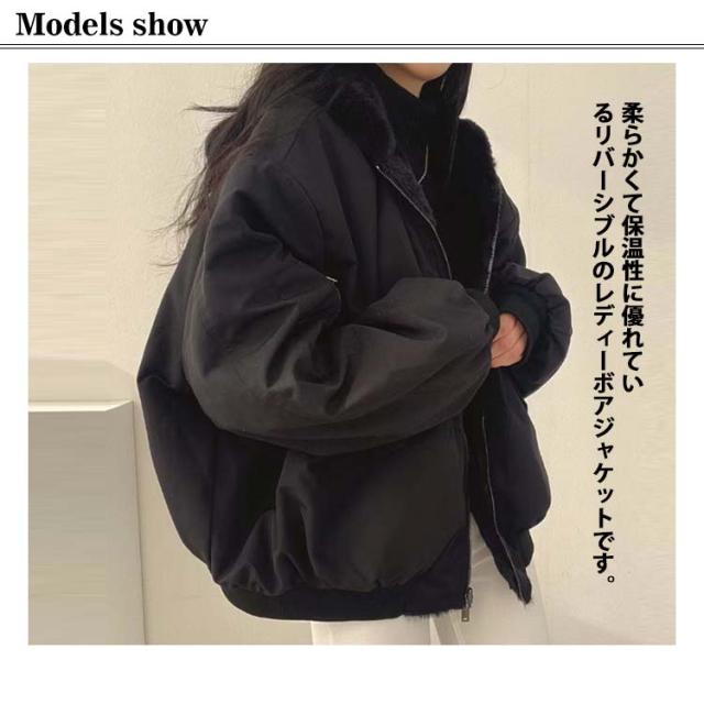 アウター 暖かい リバーシブル レディース 2way ボアジャケット 両面着用 秋冬 ボアブルゾン ファーコート フリース 防寒 ボアコート 韓国ファッション カジュアル 通学 通勤 ふわふわ もこもこ フード付き