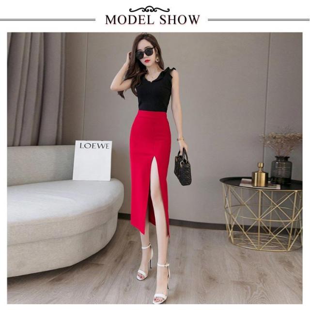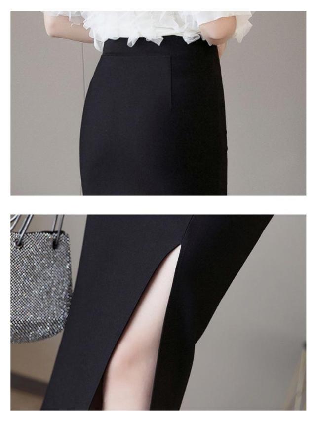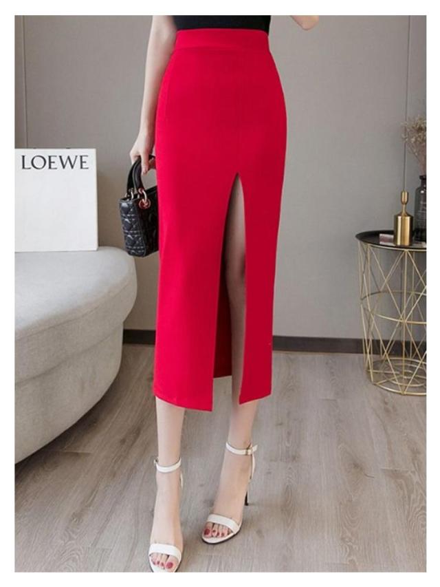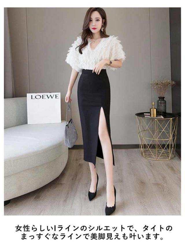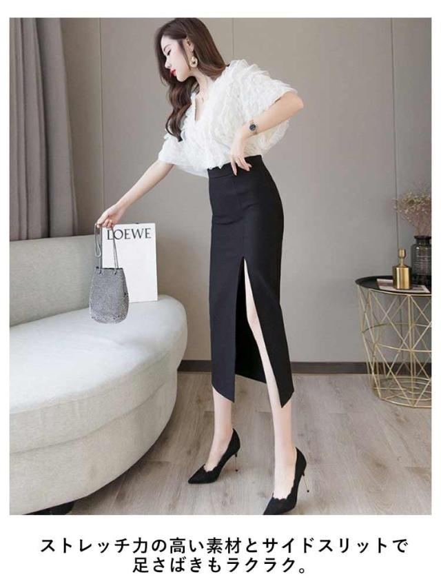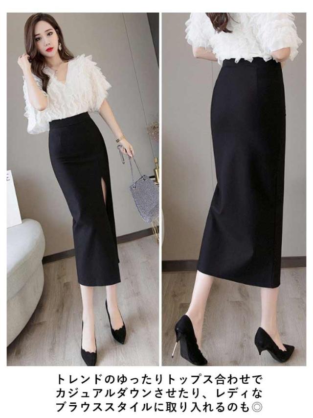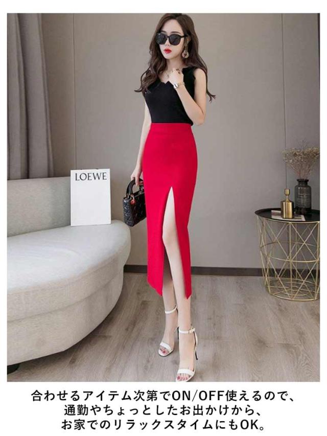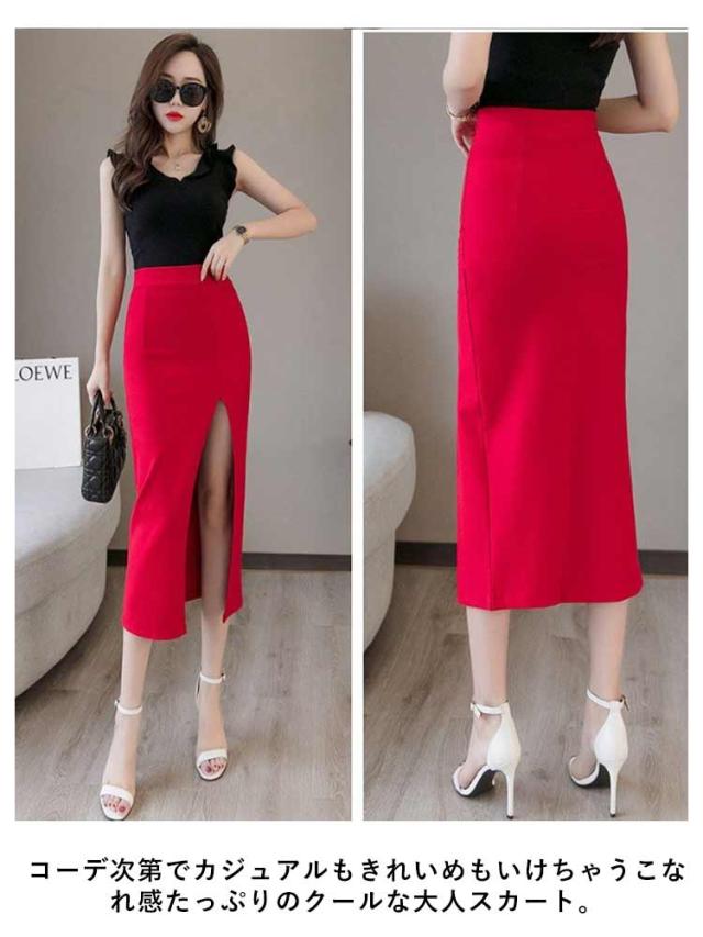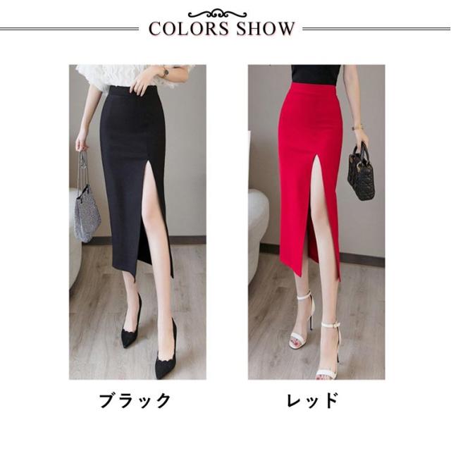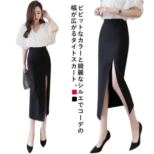 タイトスカート ペンシルスカート スカート スリット ストレッチ ミディア丈 ハイウエスト ロングスカート ラフ きれいめ 美脚効果 シンプル 大きいサイズ 無地 上品 通勤 オフィス 美脚 OL 体型カバー 二次会 ブラック レッド