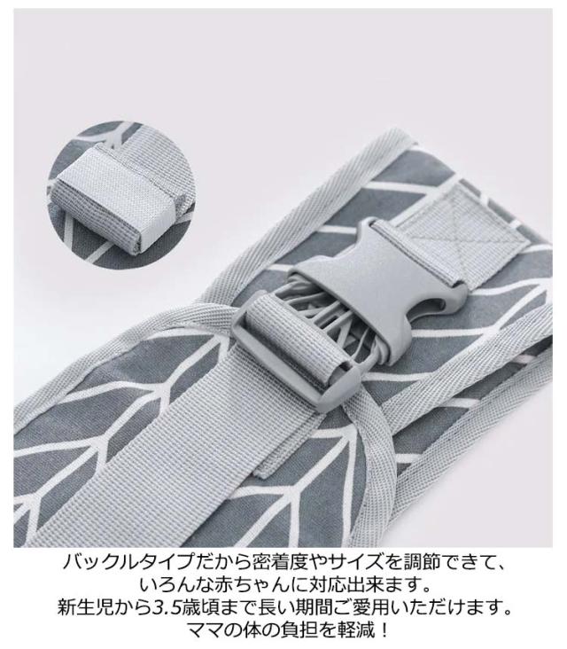 | 赤ちゃんが居心地のいい多機能抱っこひも、新生児からお使いいただけるのベビースリング。 バックルタイプだから密着度やサイズを調節できて、いろんな赤ちゃんに対応出来ます。新生児から3.5歳頃まで長い期間ご愛用いただけます。ママの体の負担を軽減! 包み込むスリングの中は、まるで大好きなママのおなかにいるよう。赤ちゃんがとってもリラックスできる空間です。 落下防止で安心ですひとりで簡単に使用可能。 ベルトを調整して折りたたんでコンパクトに。 赤ちゃんの重みを、肩から背中へ分散することで、ママの腰の痛みや肩への負担を減らす効果があります。 | |