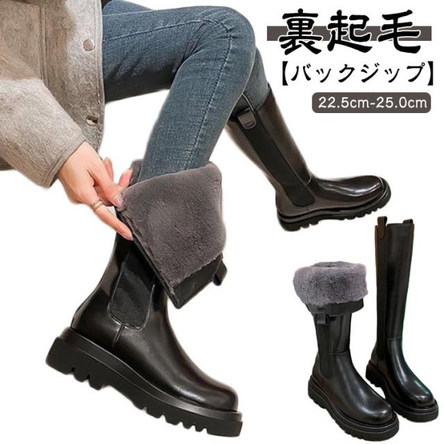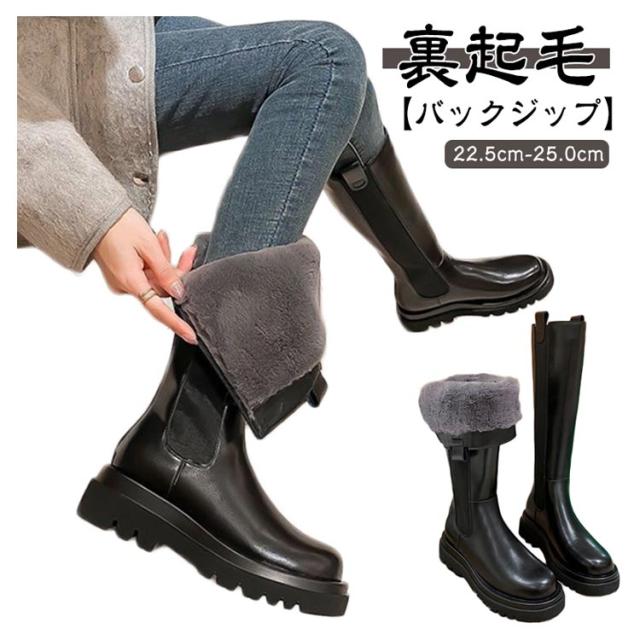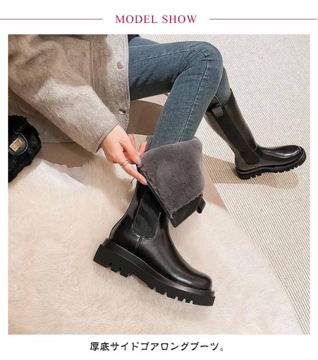 ロングブーツ サイドゴアブーツ ブーツ 保温 ロング レディース ファー バックジップ 厚底 暖かい 裏起毛 サイドゴア 5cmヒール 防寒 ボア 厚底ブーツ 極暖 防寒ブーツ あたっか トラックソール 防滑 滑りにくい 歩きやすい 冬靴 大人 カジュアル