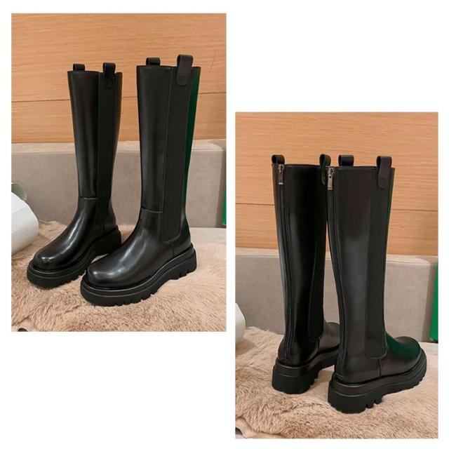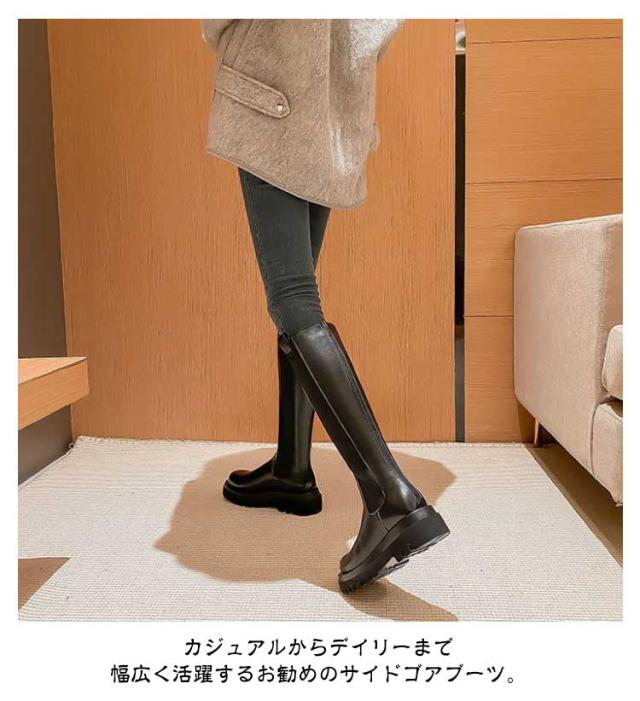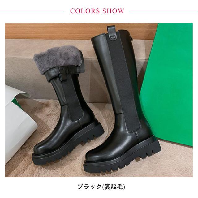 | 厚底サイドゴアロングブーツ。【バックジップ】【裏起毛】 定番のサイドゴアもロング丈でカジュアル過ぎない大人っぽい印象に・ボリュームのあるトラックソールでスタイルアップ! 中敷きと甲の内側がすべてフェイクファーになっているので、足先全体がファーに包まれます。 グリップ力と安定感のあるソールで疲れにくく、長時間のおでかけにもぴったりです。 サイドファスナー付きで脱ぎ履きラクチン♪ カジュアルからデイリーまで幅広く活躍するお勧めのサイドゴアブーツ。 | |