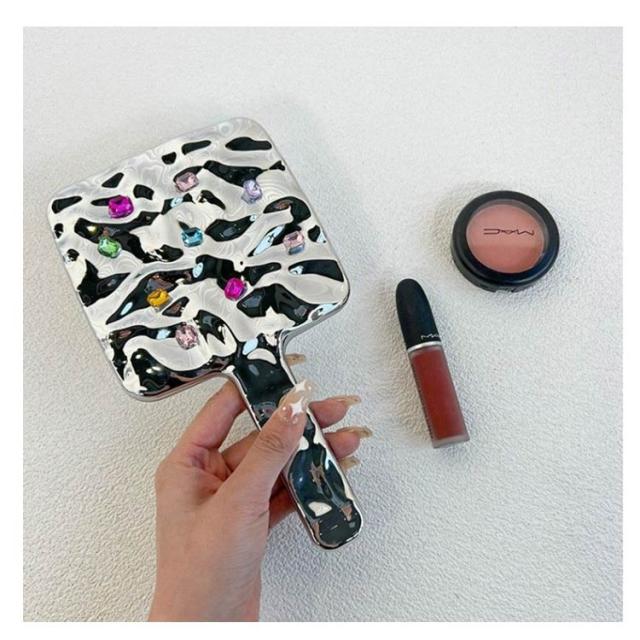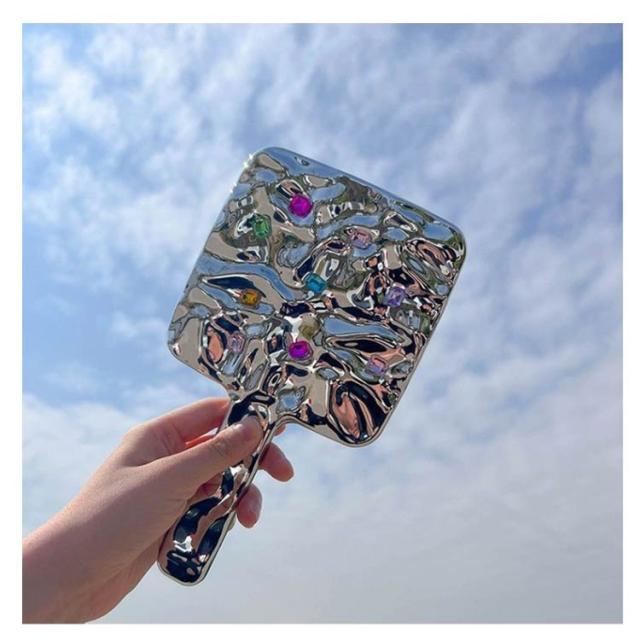 装飾 ミニ 手鏡 シルバー ラインストーン 高級 手鏡 大人 きらきら コンパクト おしゃれ 大きいサイズ コンパクトミラー 角形 お姫様ミラー 姫系