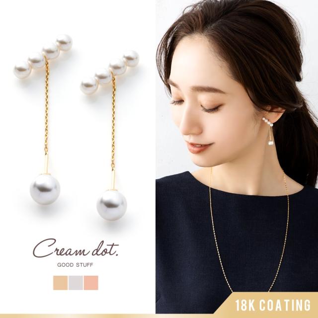 一粒パールのバックキャッチが可愛いチェーンピアス。パールバーの角度やチェーンの長さを調節すると様々なフォルムにカタチを変えるデザインで、気分に合わせてアレンジ自由自在に楽しめちゃいます◎