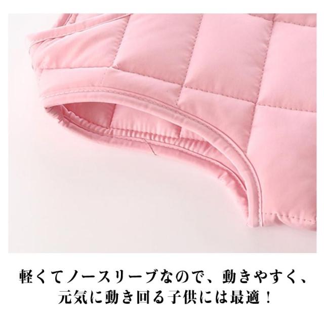 | あったかなダウンベストは毎年の冬定番!寒気から大切なお子様を守る◎ 薄いのに保温性に優れている中綿ダウンジャケット! 中綿はふんわり柔らかな超極細ファイバー。 ダウンよりずっとコスパが良いのも嬉しい♪前開きボタンで着脱も楽チンです♪ 軽くてノースリーブなので、動きやすく、元気に動き回る子供には最適! | |