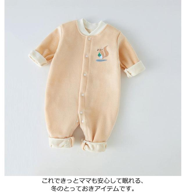 | こんなアイテム欲しかった!ベビーが着たまま寝られる裏起毛スリーパー。 パンツ型になるのではだけにくく、就寝前から着せられます。 フリース素材なので暖かく布団を蹴飛ばしても安心。 ママもぐっすり眠れます。袖付きなので肩も冷えず安心です。 胸元のアニマルの刺しゅうがアクセントに。 これできっとママも安心して眠れる、冬のとっておきアイテムです。 ママから赤ちゃんへ、出産祝いとして、甥っ子&姪っ子ちゃんへのプレゼントにもぴったり。 | |