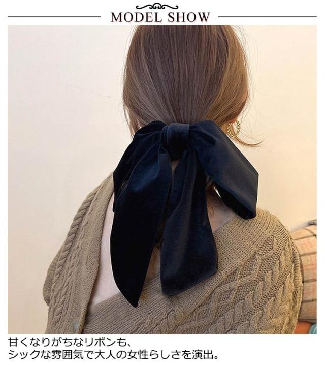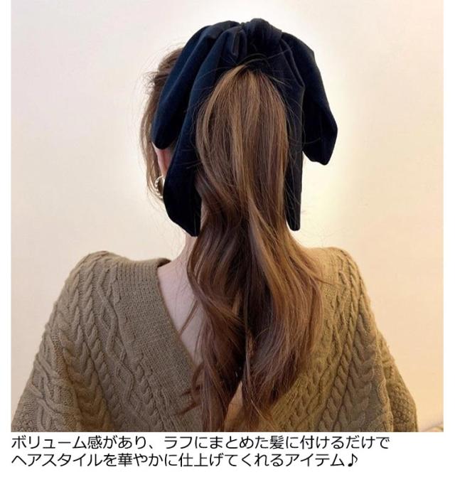 | 光沢のあるベロア調生地が存在感を発揮するリボンシュシュ。 甘くなりがちなリボンも、シックな雰囲気で大人の女性らしさを演出。 ボリューム感があり、ラフにまとめた髪に付けるだけでヘアスタイルを華やかに仕上げてくれるアイテム♪ 1つに結び髪をまとめるだけでヘアアレンジの完成!ポニーテールやローポニー、ハーフアップ、おだんごヘアにも相性ピッタリ。 いつものコーデにプラスするだけでグッと垢ぬけたコーディネートに◎ デイリーに使えるカジュアルコーデやオフィスやオケージョンスタイルにも使えるヘアアクセです。 | |
