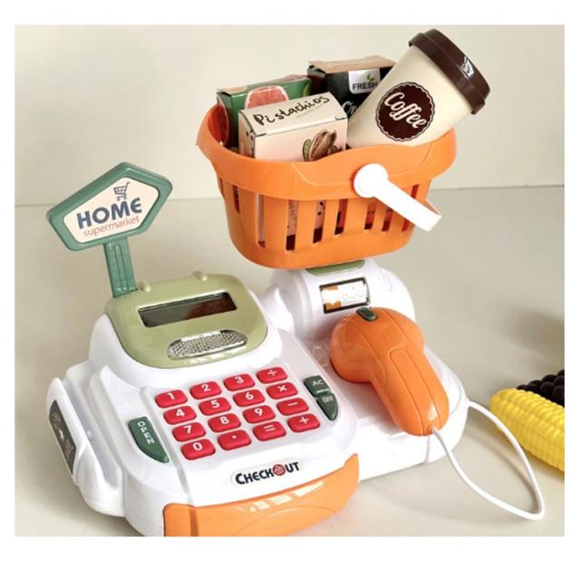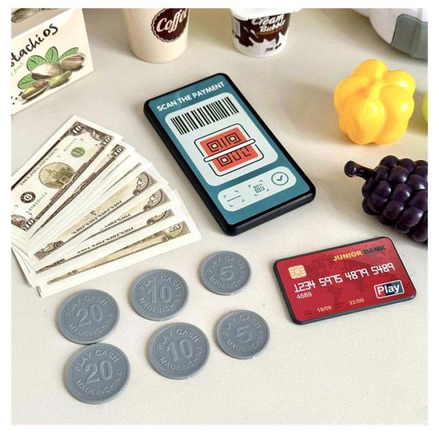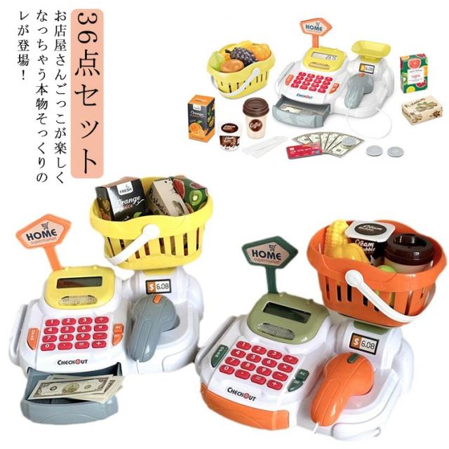知育玩具 レジおもちゃ お店屋さんごっこ 36点セット コイン 食べ物 おままごとセット お会計 キャッシュレジ お金 おままごと おままごとセット 電池式 カード お札 グッズ 男の子 女の子 学習 プレゼント