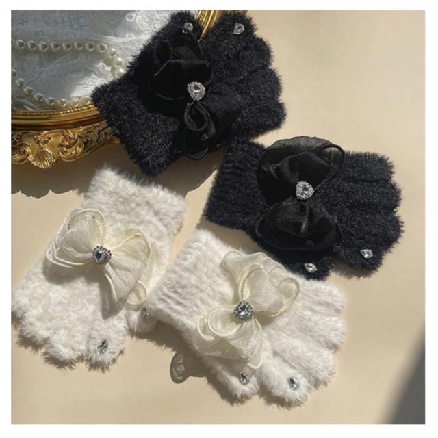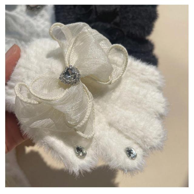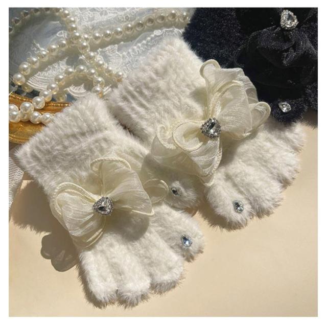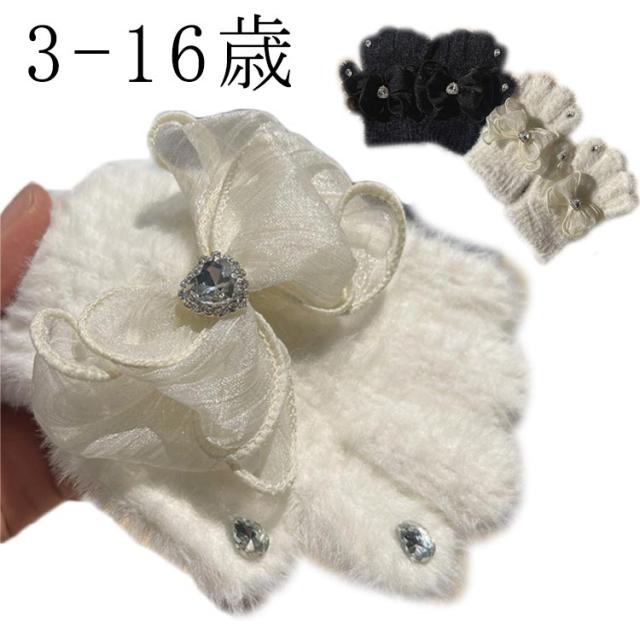 暖かい かわいい 子供 女の子 キッズ かわいい キラキラ キッズ 手袋 ラインストーン ハート ボア 手袋 リボン 女の子 子供 ハート 暖かい マシュマロタッチ リボン 【送料無料】