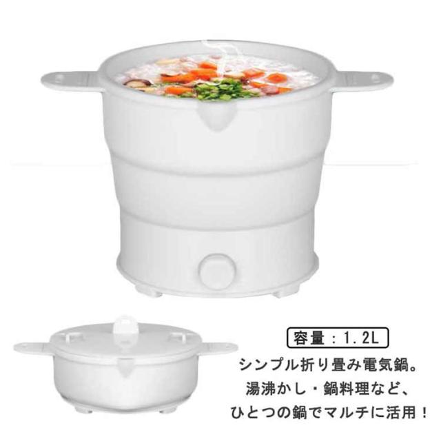 折りたたみ 多機能グリル鍋 シリコン鍋 折りたたみ 折りたたみケトル 電気なべ 電気ケトル 折りたたみ鍋 大容量 1.2L やわらか鍋 炊く 煮る 蒸し 電気鍋 炊飯 炒める 一人鍋 電気ラーメン鍋 野菜鍋 折り畳み電気鍋