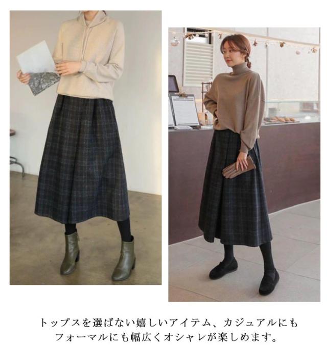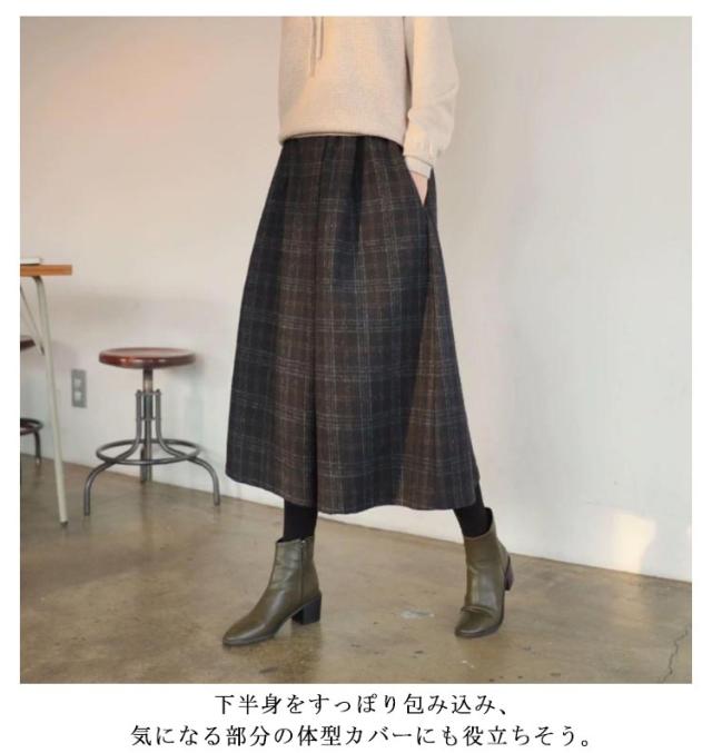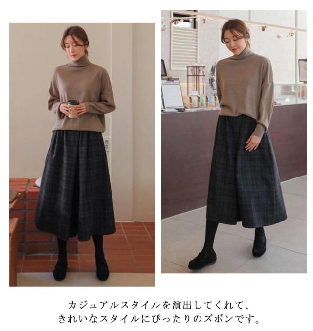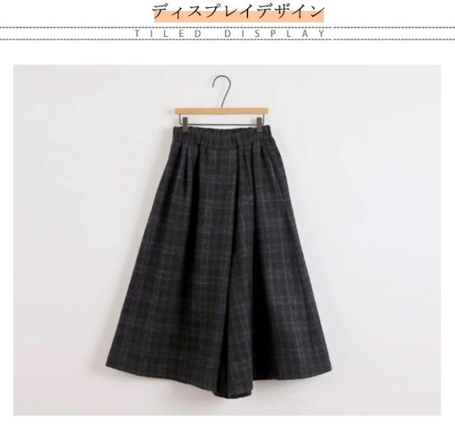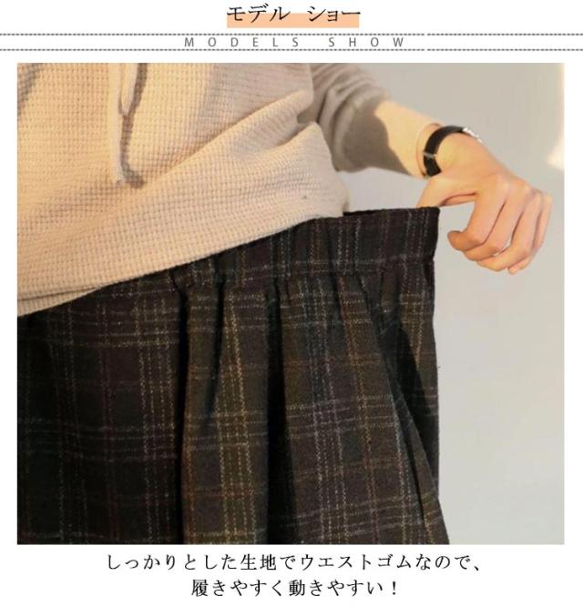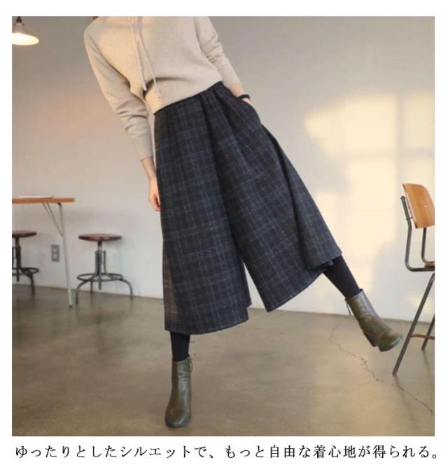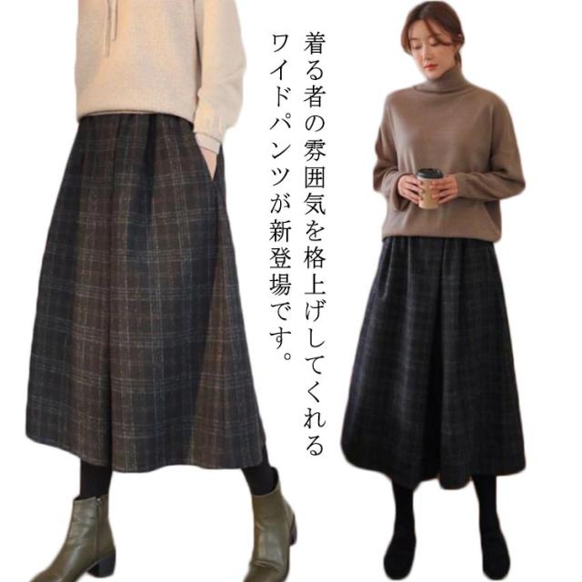 レディース ズボン ウエストゴム ロングパンツ ワイドパンツ ハイウェスト ボトムス 美脚 ガウチョパンツ 九分丈 チェック柄 キレイめ カジュアル 通勤 秋冬 お洒落