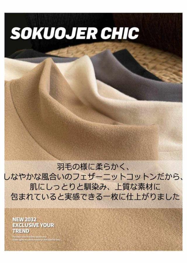 | 首まですっぽり包まれるタートルネックだから、着心地にこだわりたい 羽毛の様に柔らかく、しなやかな風合いのフェザーニットコットンだから、肌にしっとりと馴染み、上質な素材に包まれていると実感できる一枚に仕上がりました いつまでも触れていたくなる、心地よい暖かさを感じてください | |