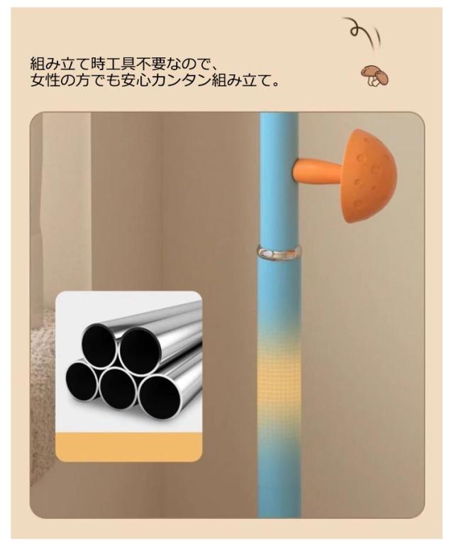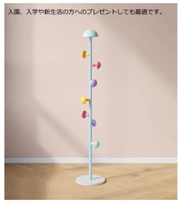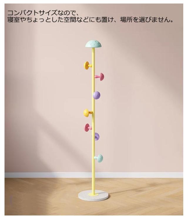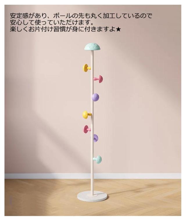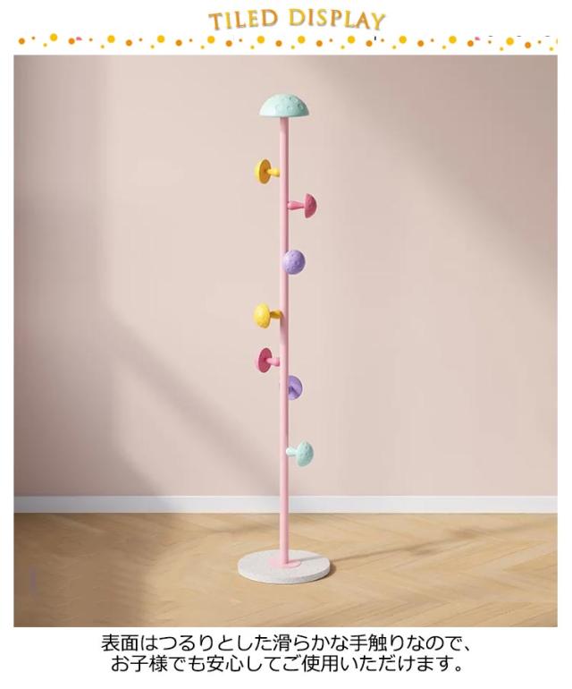 | キノコがかわいいワンポイントのポールハンガー。 表面はつるりとした滑らかな手触りなので、お子様でも安心してご使用いただけます 洋服掛けや小物掛けの他に、バッグやマフラーなどの収納にもおすすめ。 安定感があり、ポールの先も丸く加工しているので 安心して使っていただけます。楽しくお片付け習慣が身に付きますよ★ コンパクトサイズなので、寝室やちょっとした空間などにも置け、場所を選びません。 組み立て時工具不要なので、女性の方でも安心カンタン組み立て。 入園、入学や新生活の方へのプレゼントしても最適です。 | |