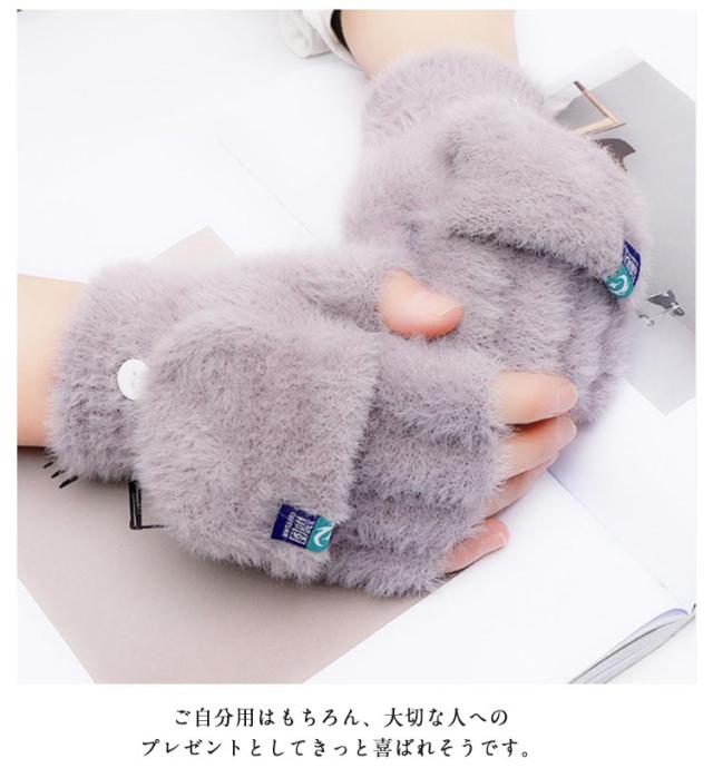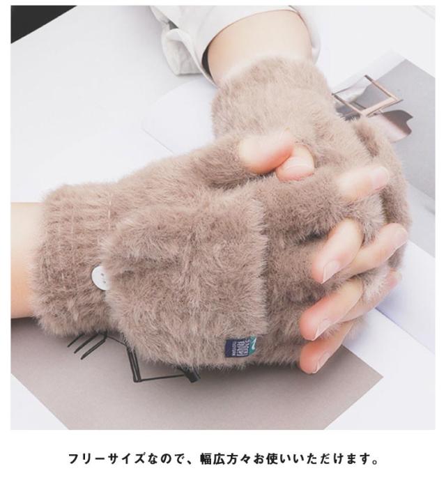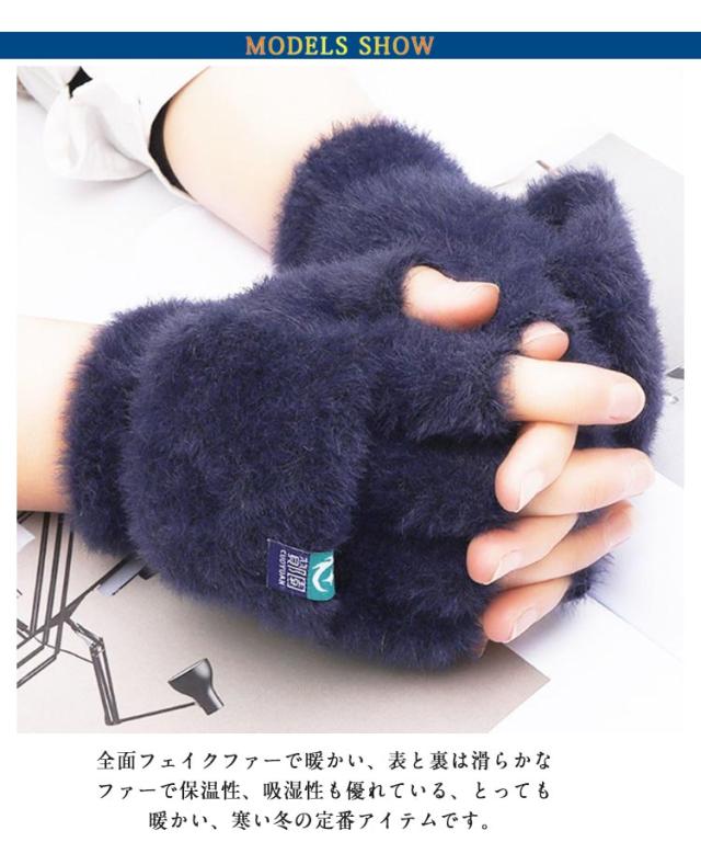 スマホ対応 あったか ファー手袋 レディース グローブ かわいい もこもこ ミトン もこもこ 暖か 指抜き プレゼント 2way 指切り 寒さ対策 冬 ふわふわ 裏起毛 ハンドウォーマー スマホ 防寒 手袋 ギフト 自転車 女性 暖かい 指紋認証 通勤 通学 アウトドア