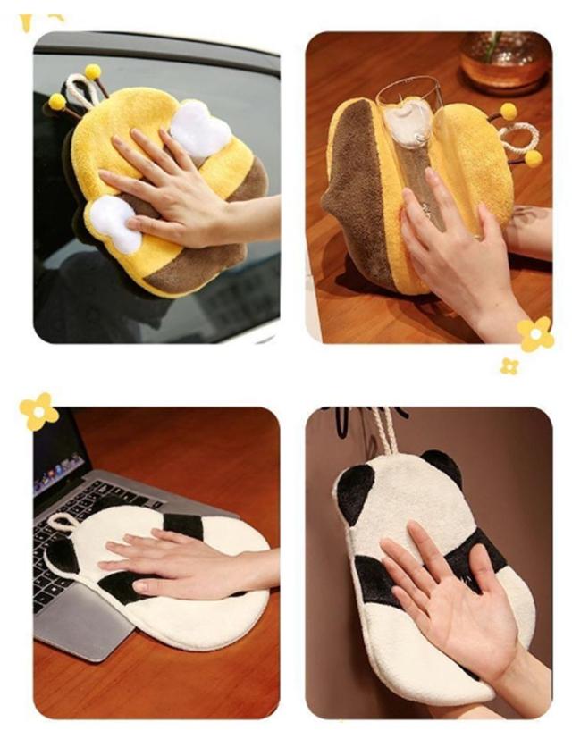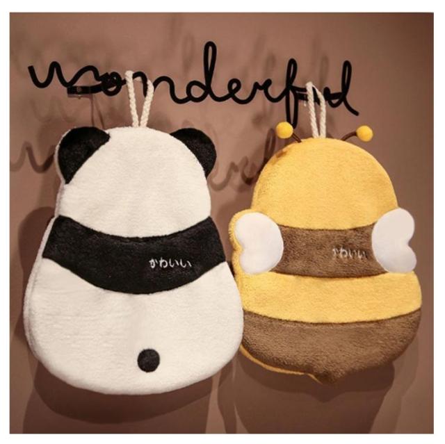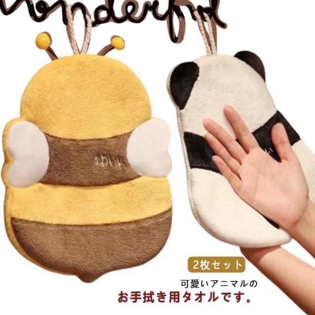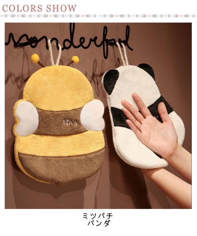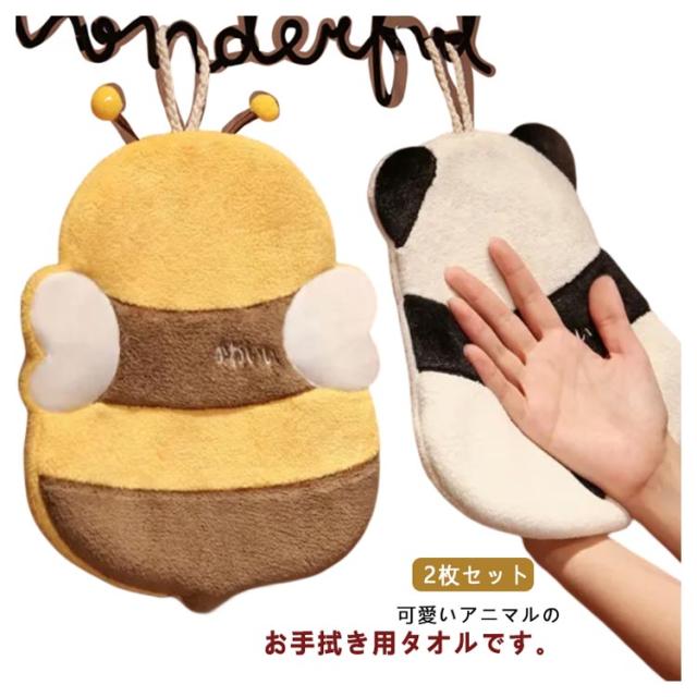 デザイン性 お手拭き 2枚セット ミツバチ パンダ 吸水 2枚セット マイクロファイバー もこもこ ハンドタオル ループ付き キッチンタオル キュート 可愛い おしゃれ かわいい プレゼント 新築祝い おすすめ