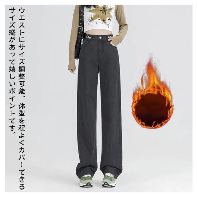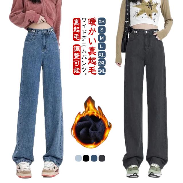 ジーンズ レディース デニムパンツ ワイドパンツ 裏起毛 デニムパンツ パンツ デニム あったか ワイド ロングパンツ 裏起毛パンツ ハイウェスト 暖かい ウエスト調整可能 カジュアル おしゃれ XS S M L XL 2XL 3XL