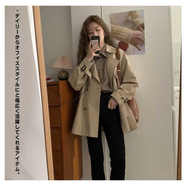 おしゃれ フォーマル カジュアル ショートコート ハーフ丈 レディース トレンチコート きれいめ ビジネス ライトアウター スプリングコート アウター 定番 通勤 オフィス 春