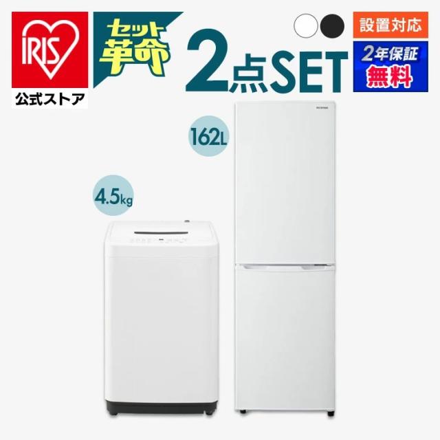 家電セット 新品 一人暮らし 2点 冷蔵庫 洗濯機 セット 小型 スリム コンパクト シンプル 単身 新生活 春 白 黒 家電2点セット 冷蔵庫 162L 洗濯機 5kg ホワイト ブラック アイリスオーヤマ 送料無料