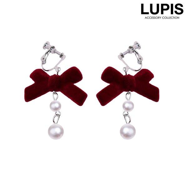 イヤリング レディース リボン パール ベロア 秋冬 ガーリー かわいい 上品 華やか クラシカル 韓国 韓国っぽ LUPIS ルピス