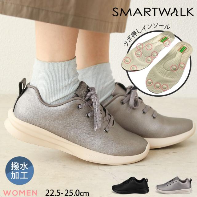スニーカー レディース おしゃれ ツボ押し 凸凹インソール 衝撃吸収 婦人 靴 足裏マッサージ 疲れにくい 土踏まず アーチサポート 立ち仕事 運動 カジュアルシューズ 撥水 黒 ブラック グレー スマートウォーク 1019