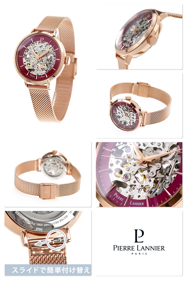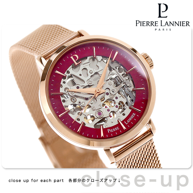 ピエールラニエ オートマティックコレクション ピンクゴールド×フランボワーズ 自動巻き 腕時計 ブランド レディース オープンハート Pierre Lannier P313B958 アナログ ラズベリー ピンクゴールド フランス製