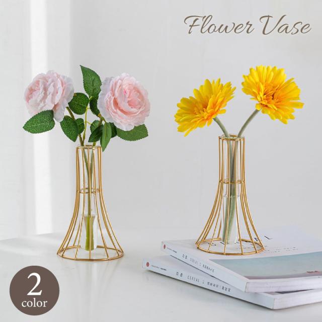 花瓶 花器 フラワーベース 一輪挿し フラワースタンド インテリア 卓上 装飾 置物 ワイヤーフレーム ガラス 試験管 北欧風