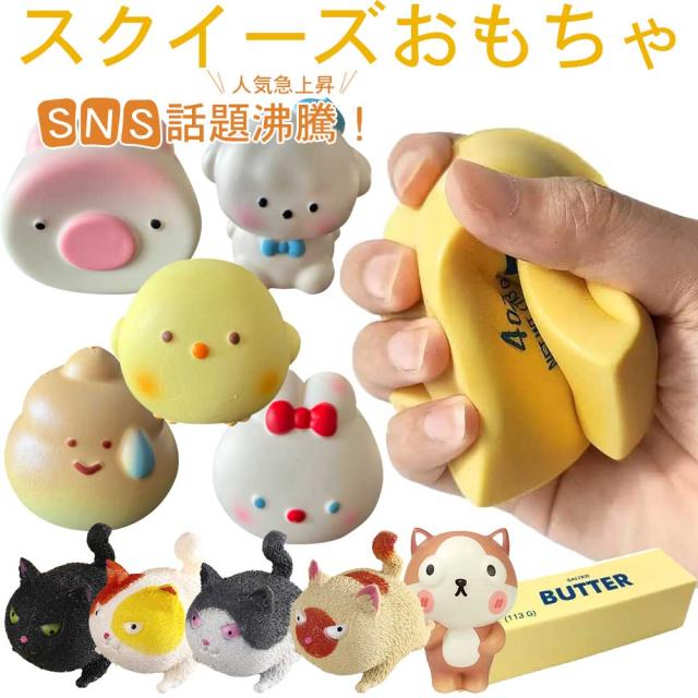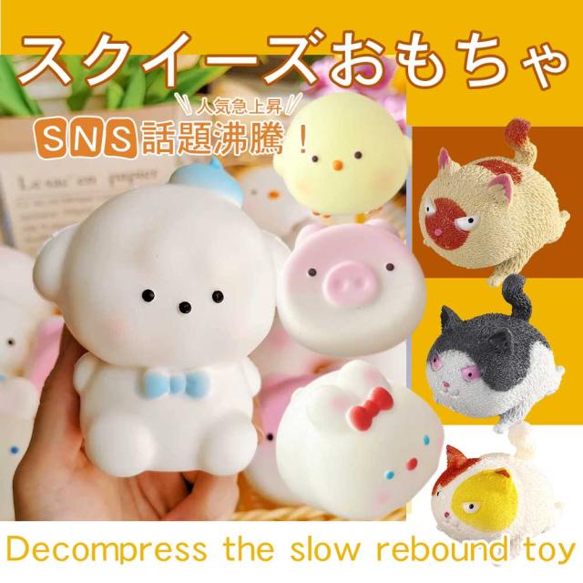 ●握るとぐにゃと変形し、むぎゅーと潰してすぐ元に戻る、ずっと触っていたいほど触り心地良い!かわいいデザインでお部屋に飾ってみたり、見てさわって楽しみ方は無限大!